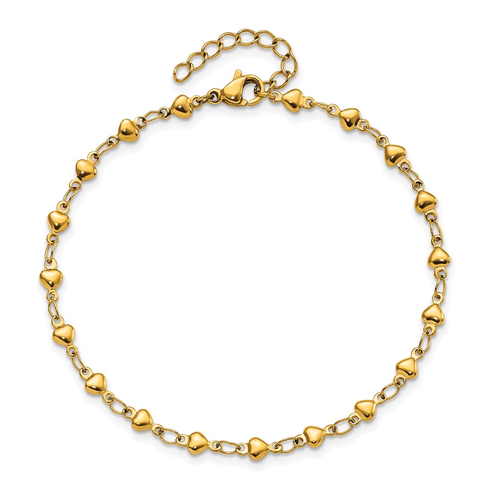 Chisel Stainless Steel Polished Yellow IP-plated Hearts 9 inch Anklet Plus 1 inch Extension