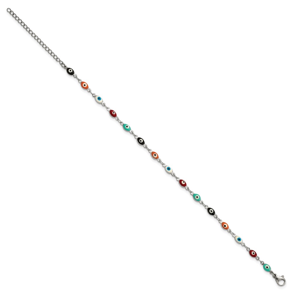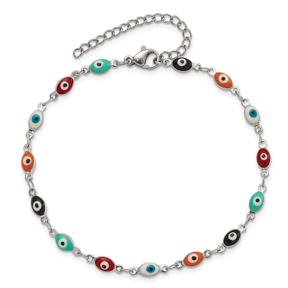 Chisel Stainless Steel Polished Enameled Eyes 9 inch Anklet Plus 1 inch Extension