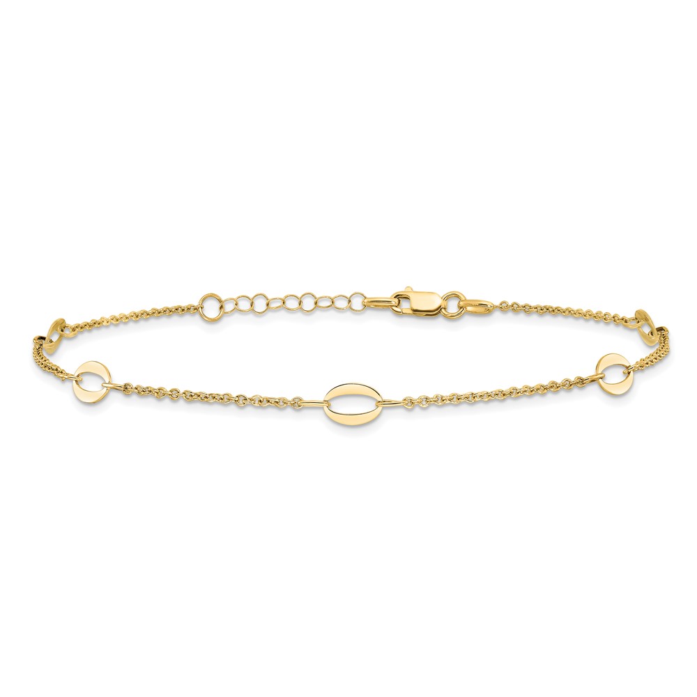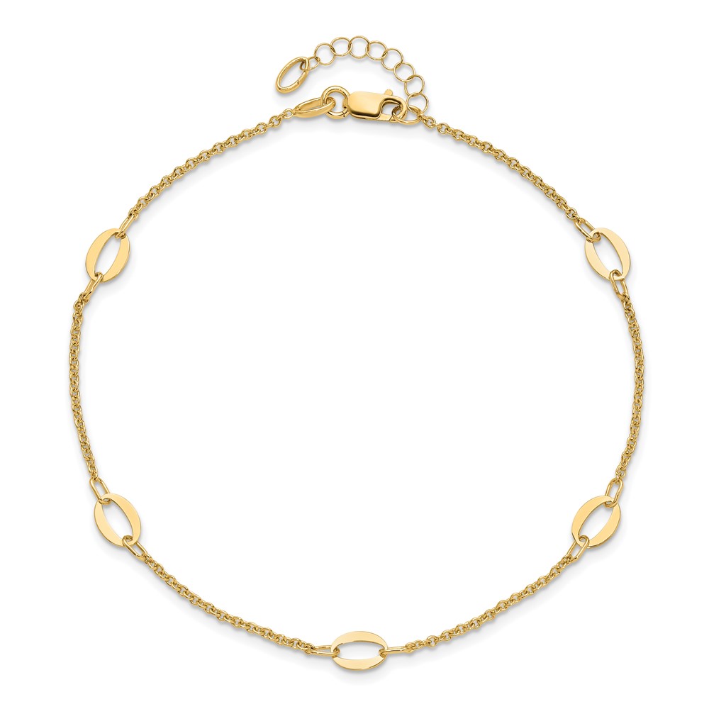 Leslie's 14K Oval Links 5-Station 9 inch Plus 1 inch Extender - Total 10 inch Anklet