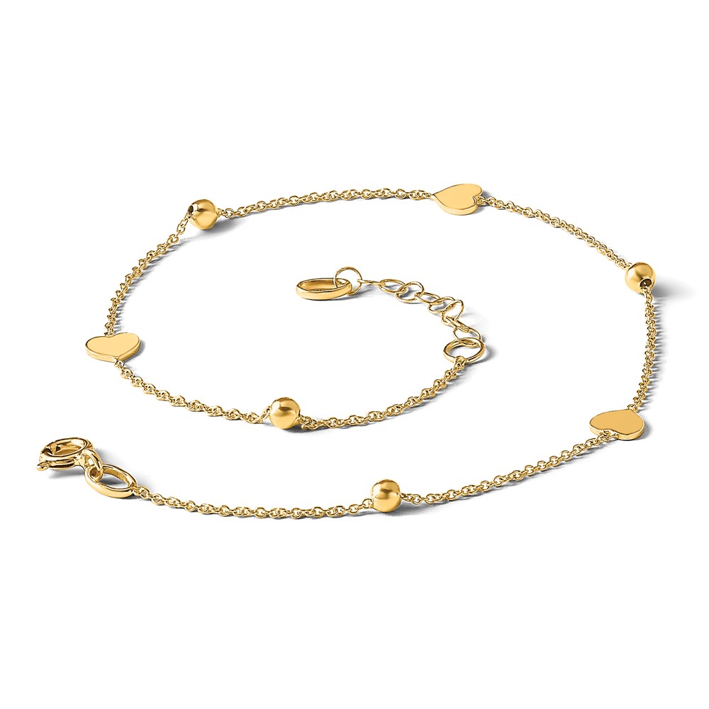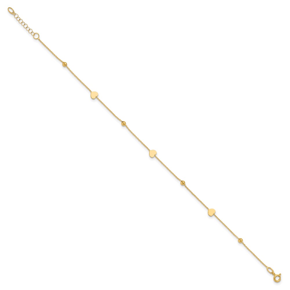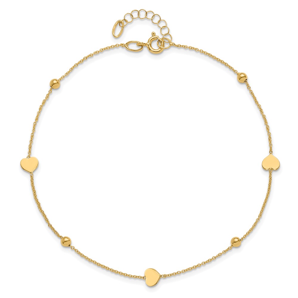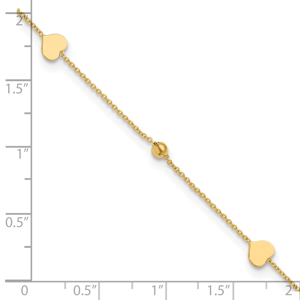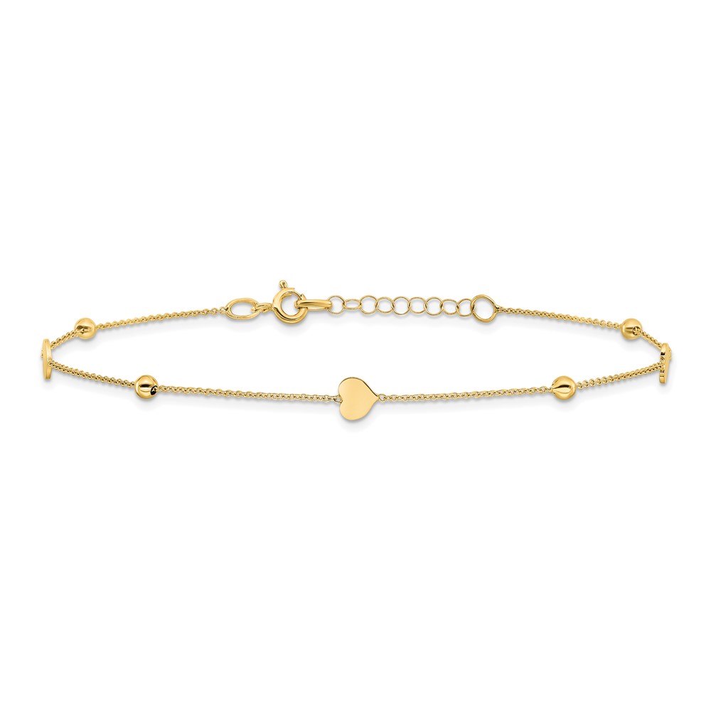 Leslie's 14K Polished Heart and Beads 9in Plus 1in ext. Anklet