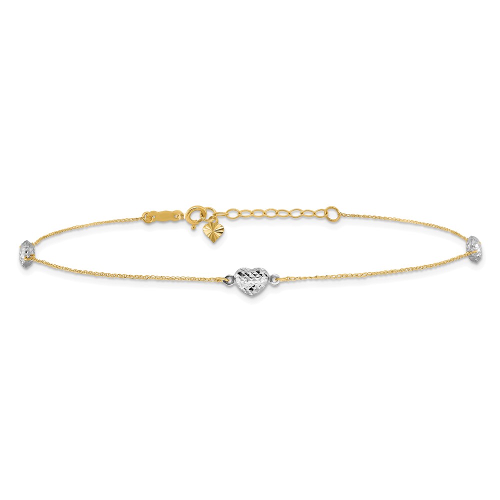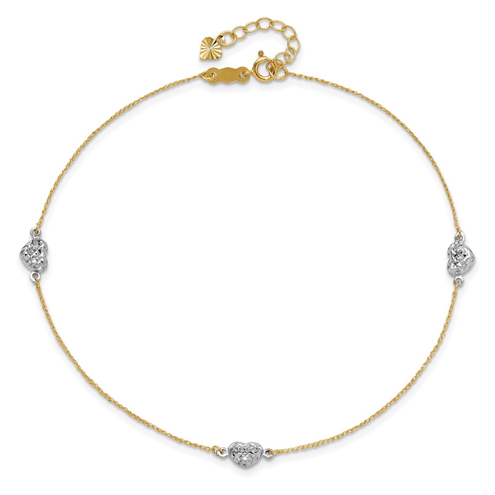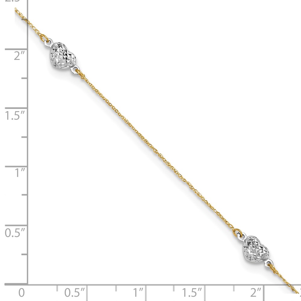 14K Two-tone 5 Hearts and Paperclip Links 9 inch Plus 1 inch Extender - Total 10 inch Anklet