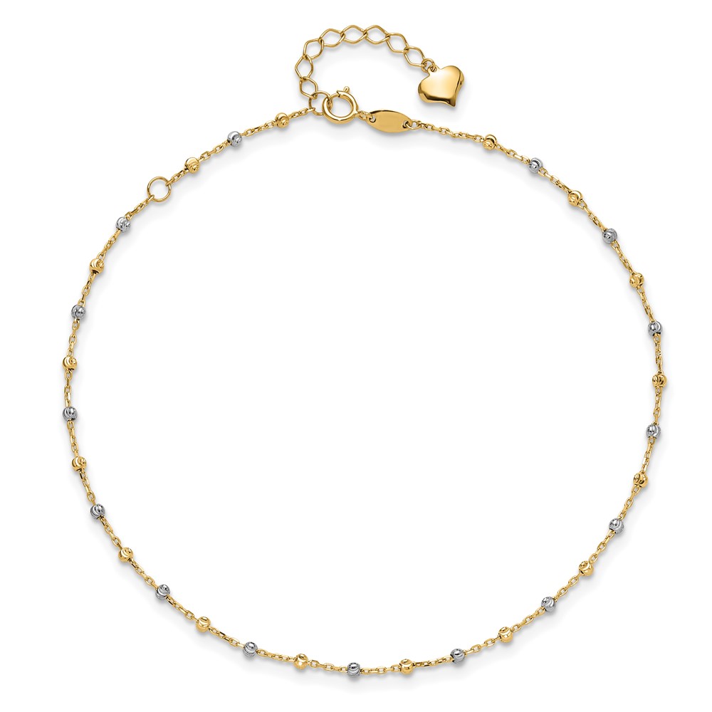 14K Two-tone Diamond-cut Bead 10 inch Plus 1 inch Extender - Total 11 inch Anklet
