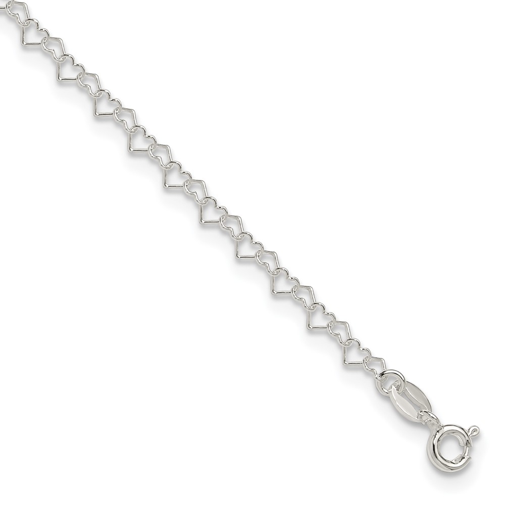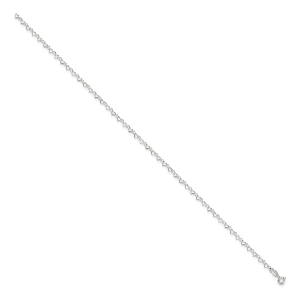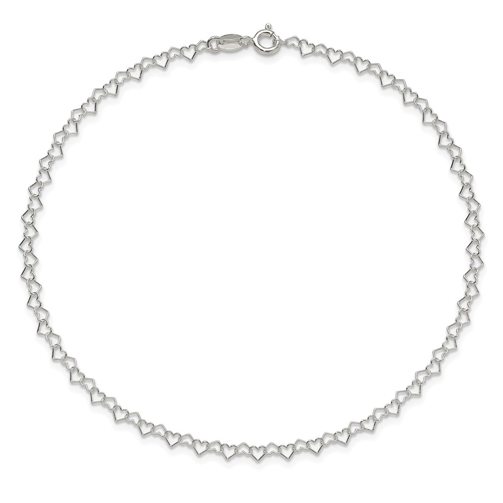 Sterling Silver Fancy Heart Link 9in. Anklet