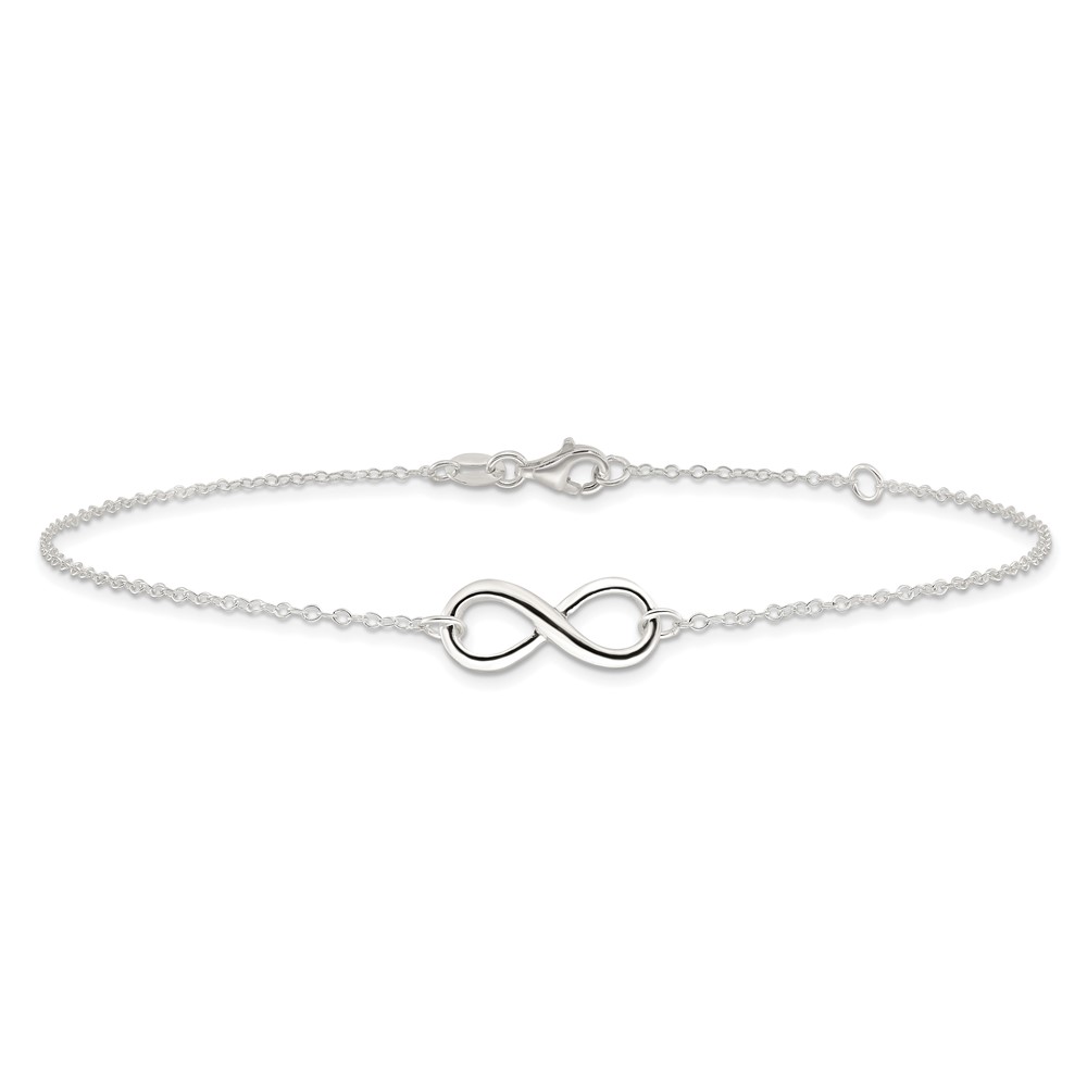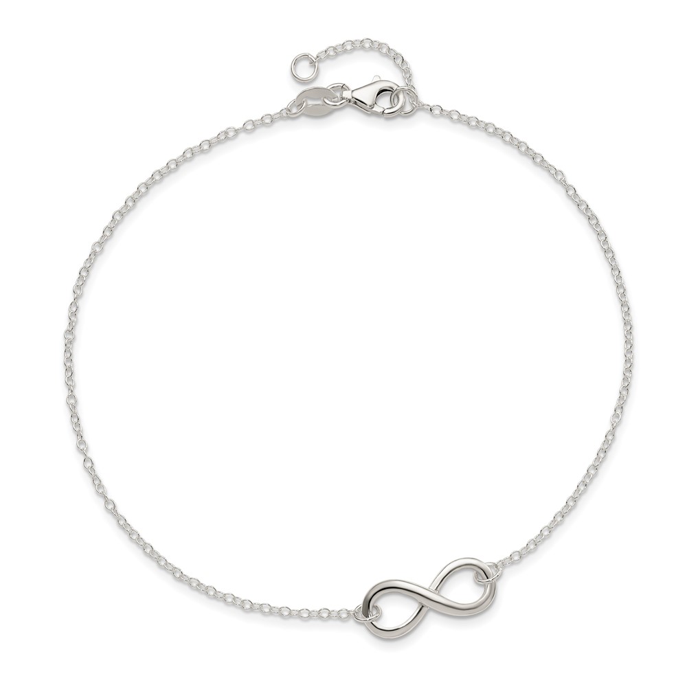 Sterling Silver Infinity 10 inch Plus 1 inch Extender - Total 11 inch Anklet