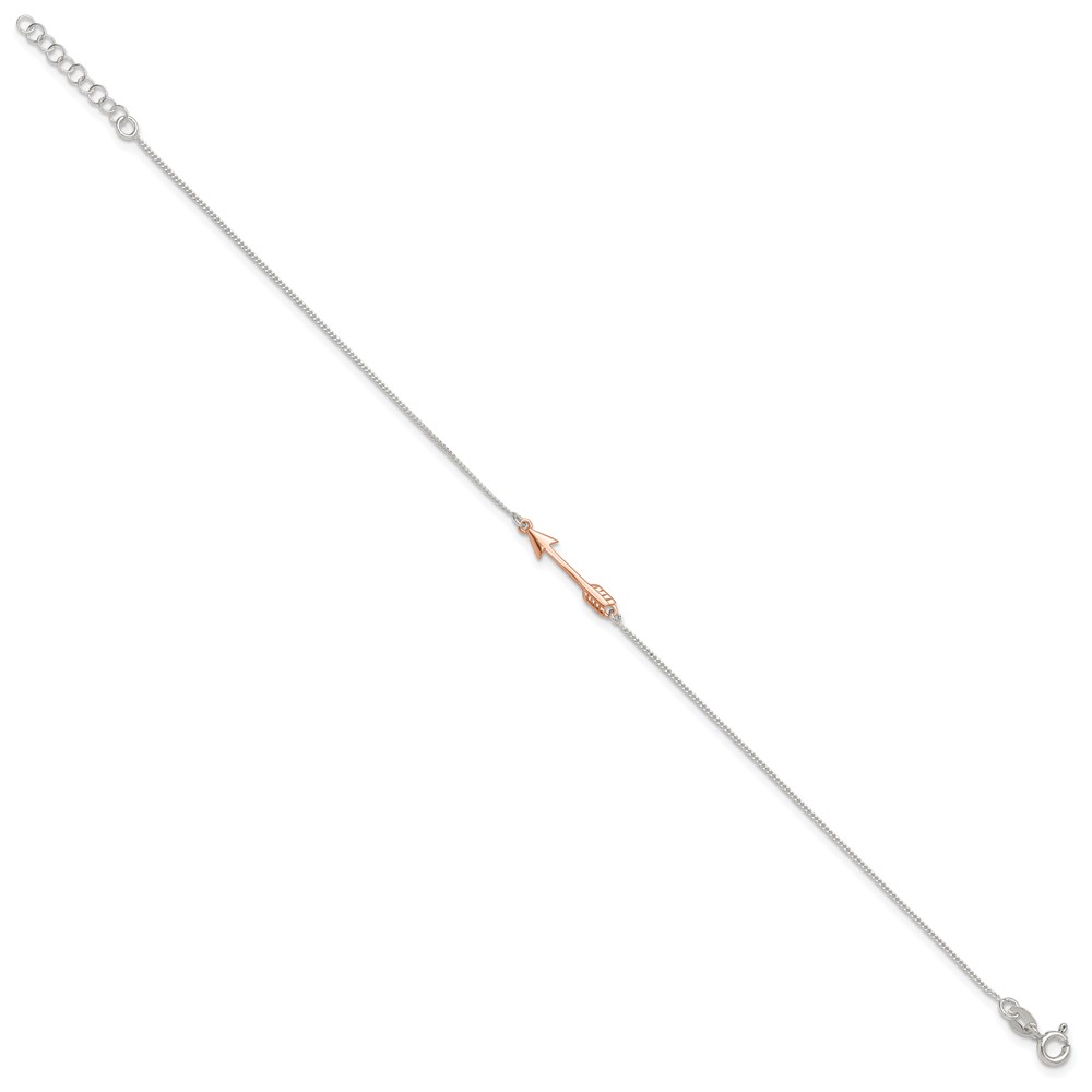 Sterling Silver with Rose-tone Arrow 10 inch Plus 1 inch Extender - Total 11 inch Anklet