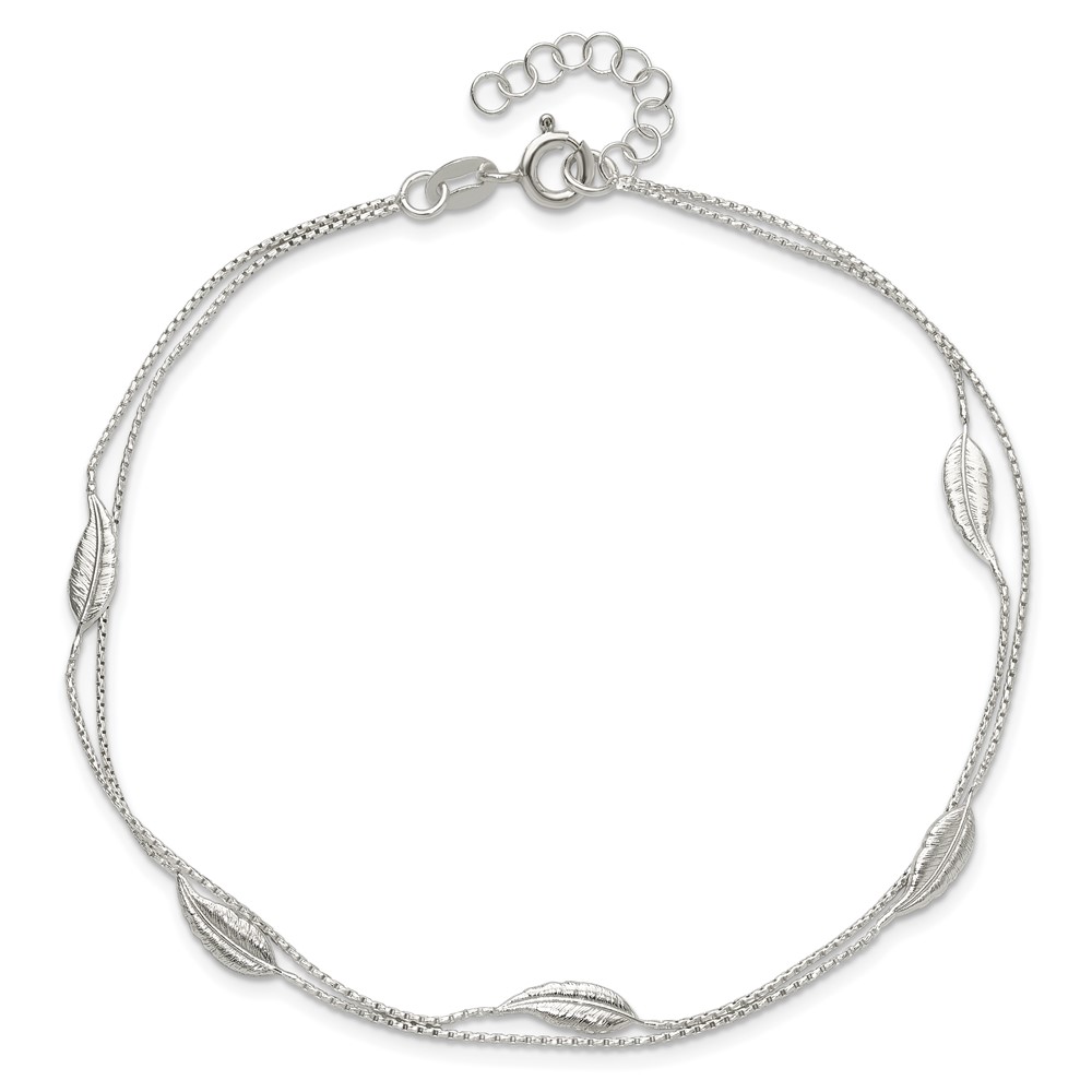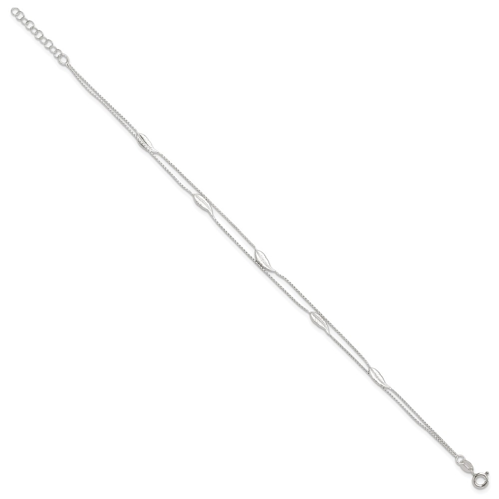 Sterling Silver 2-Strand Feathers 10 inch Plus 1 inch Extender - Total 11 inch Anklet