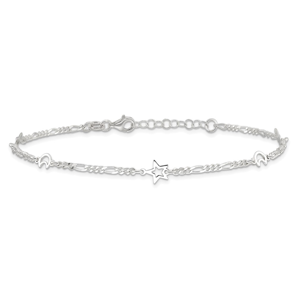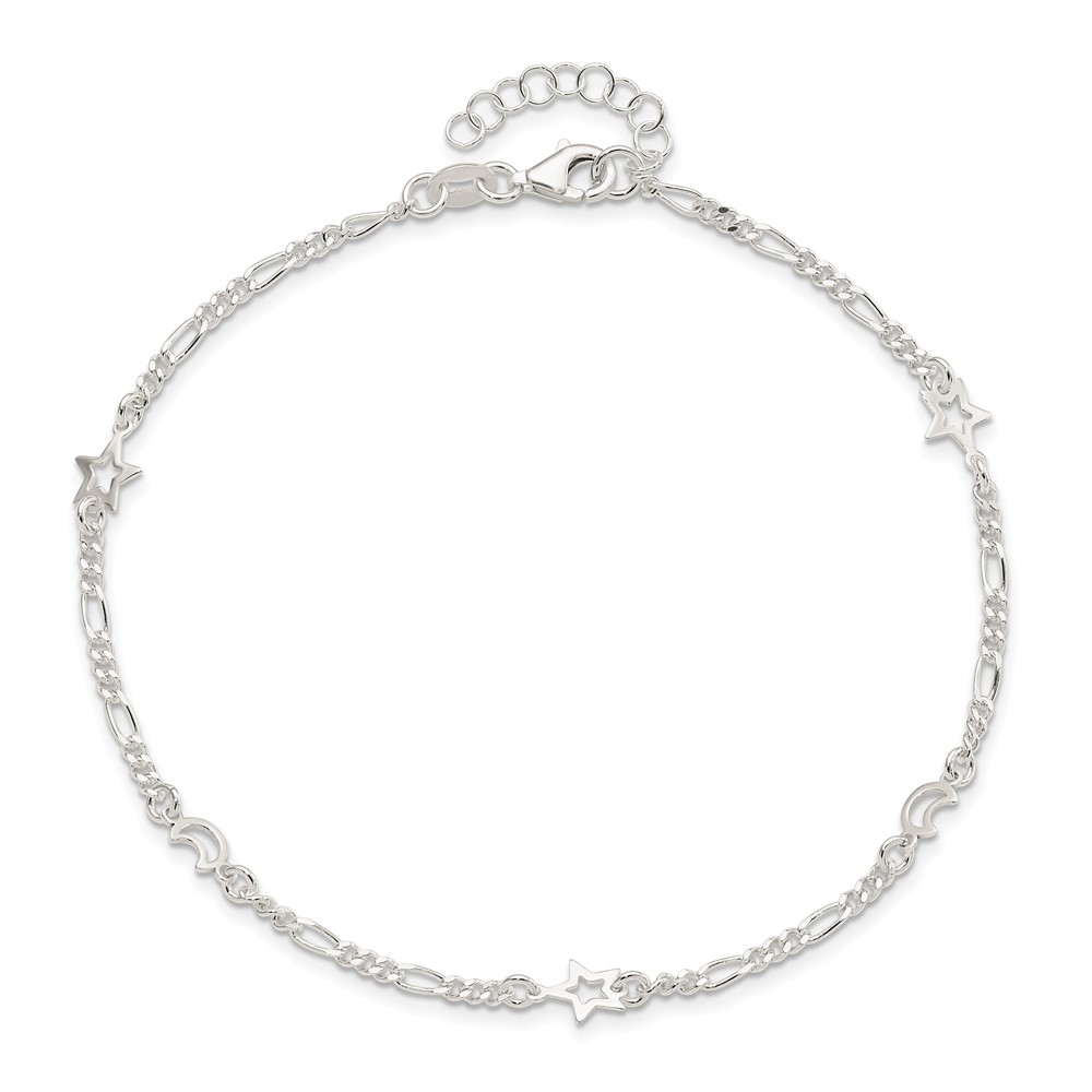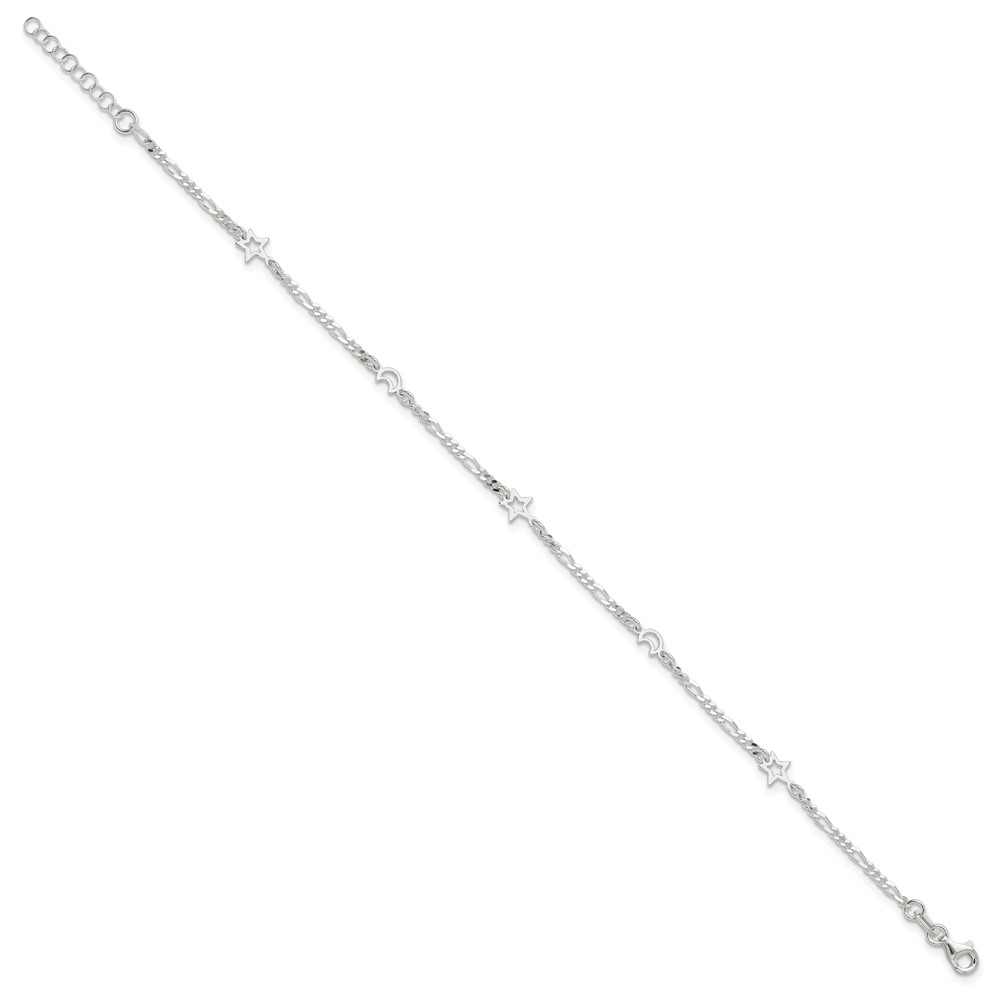 Sterling Silver Moon and Star 10 inch Plus 1 inch Extender - Total 11 inch Anklet