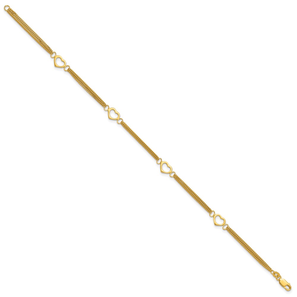 Sterling Silver Gold-tone Polished Heart Multi-Strand 10in Anklet