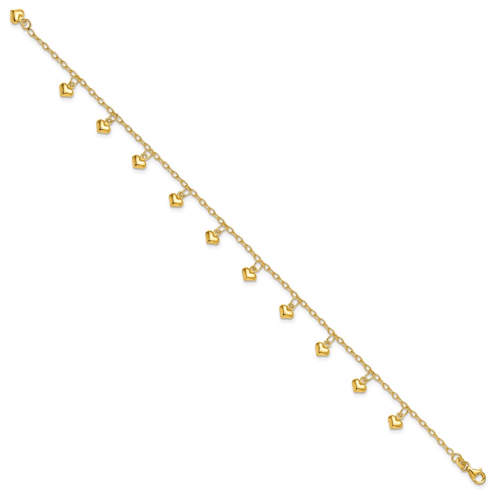 Sterling Silver Gold-tone Polished Puffed Heart 10in Anklet
