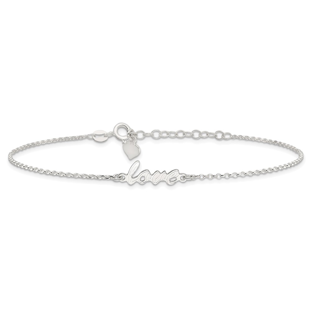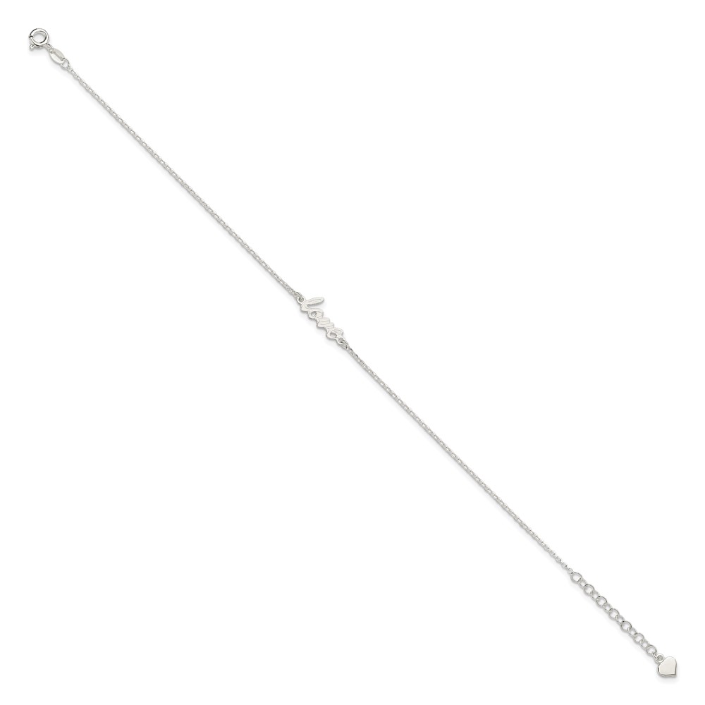 Sterling Silver LOVE Script 9 inch Plus 1 inch Extender - Total 10 inch Anklet