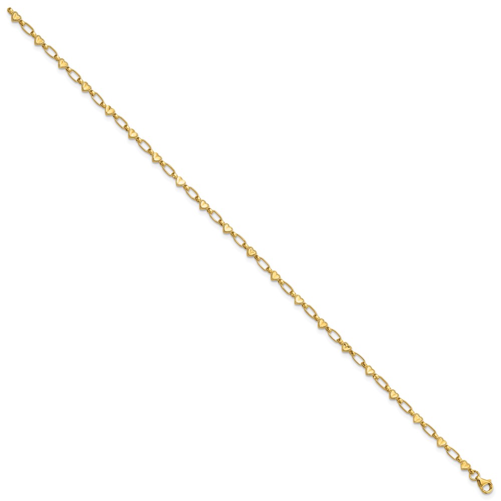 Sterling Silver Gold-tone Heart Link 10in Anklet