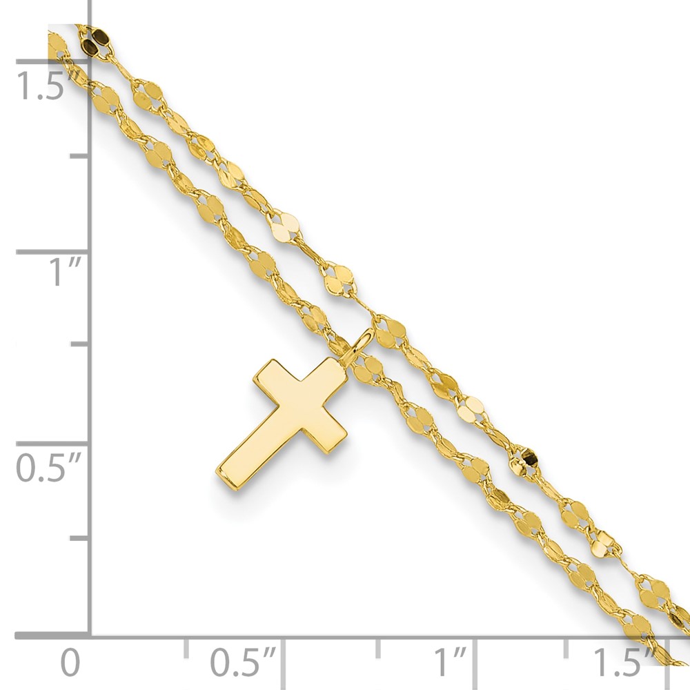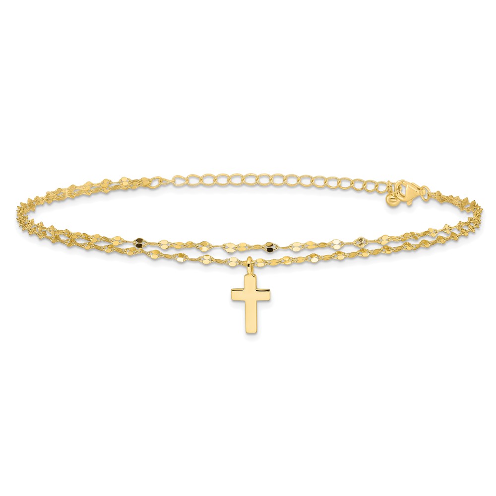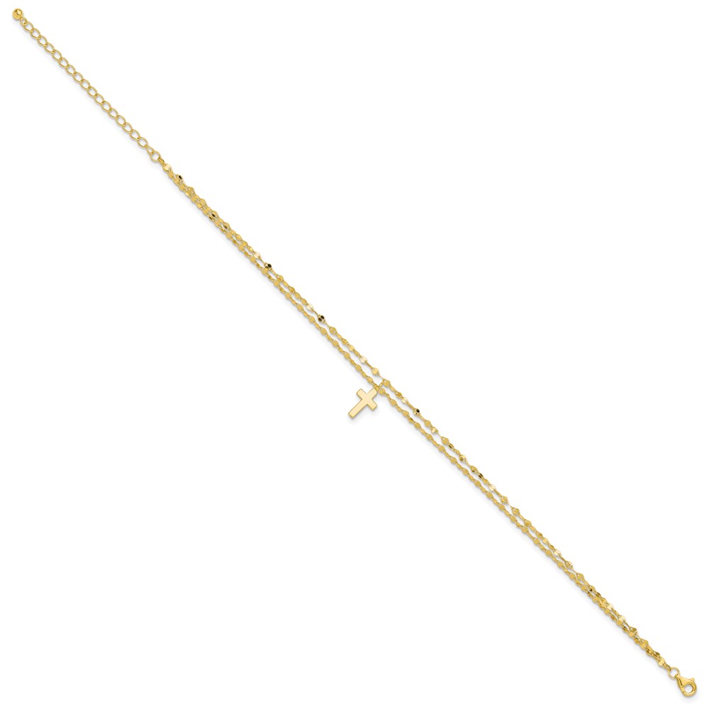 Sterling Silver Gold-tone 2-Strand Cross Charm 8.75 inch Plus 2 inch Extender - Total 10.75 inch Anklet