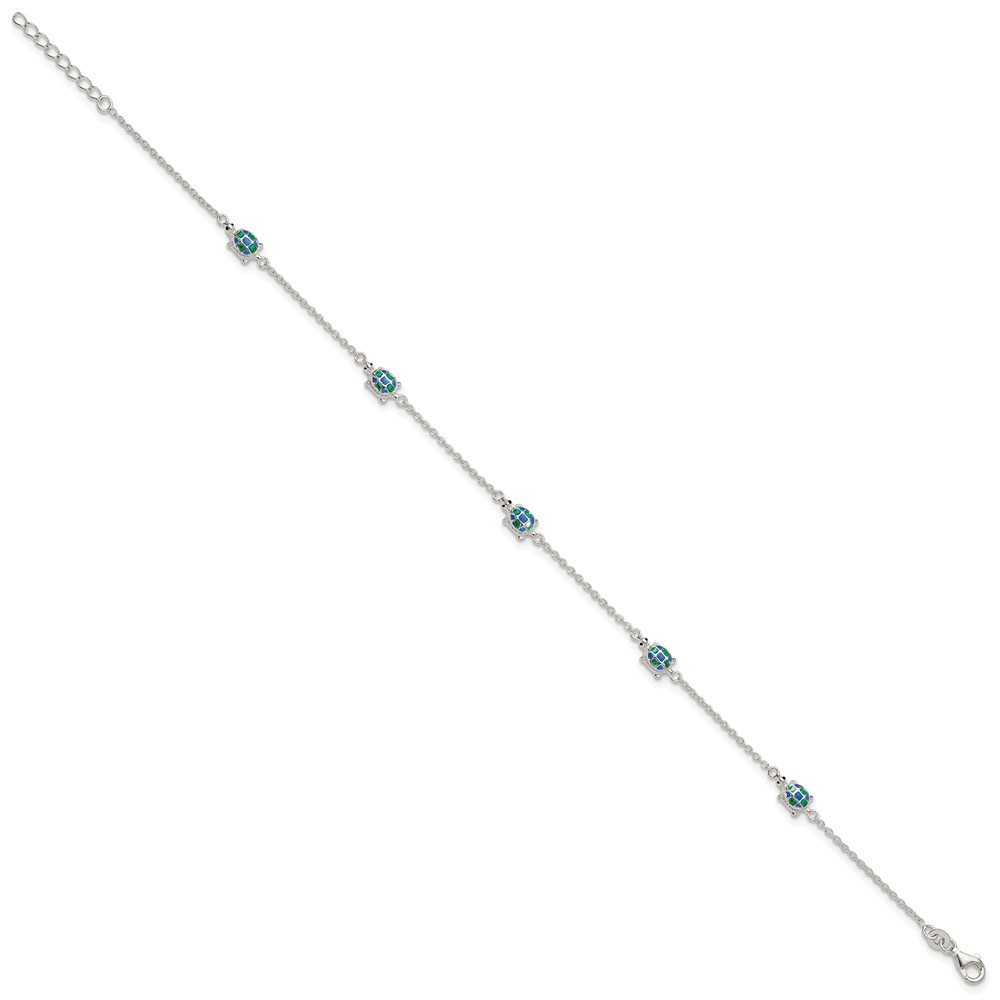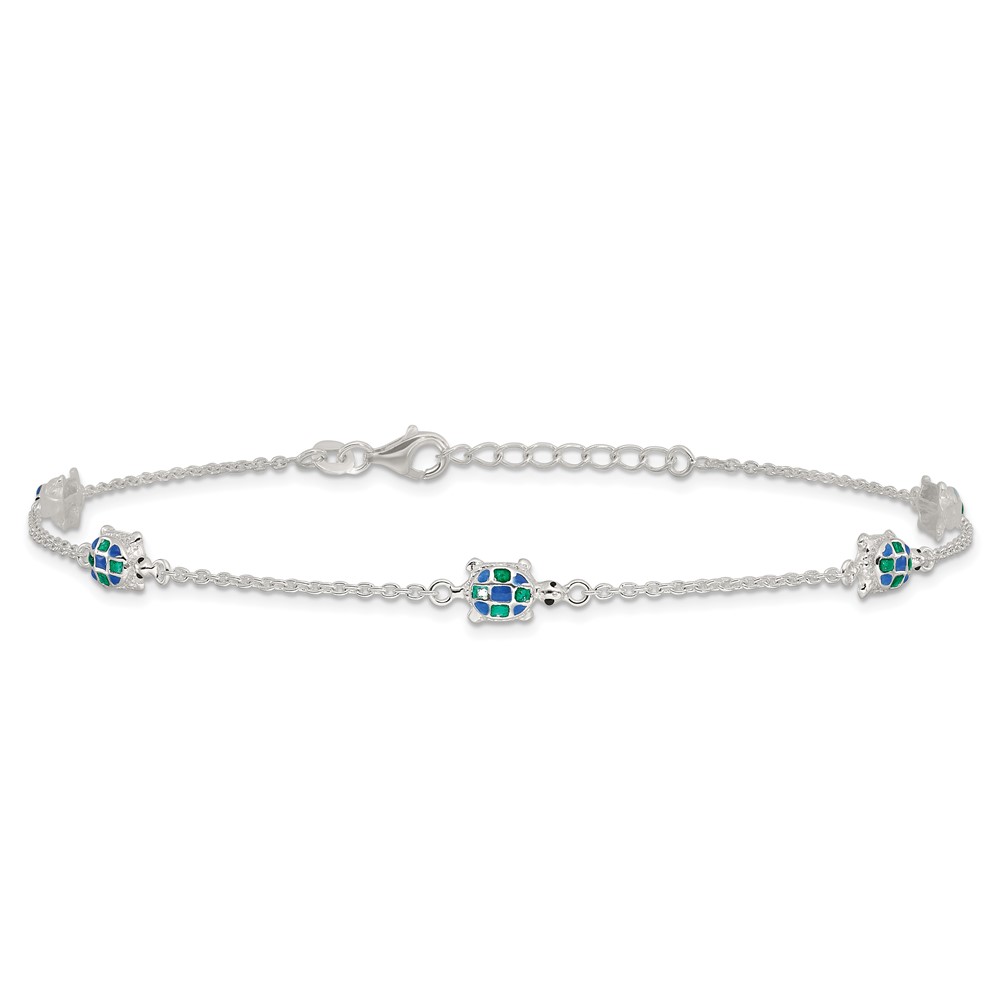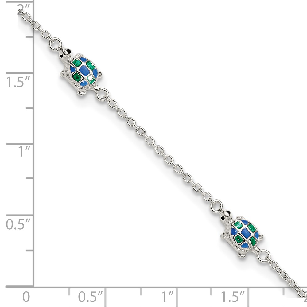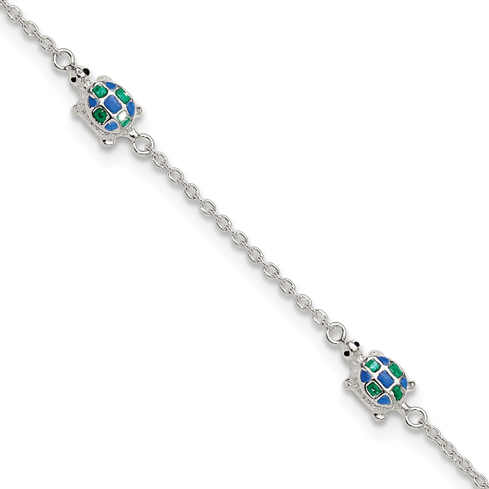 Sterling Silver Enamel Turtle 5-Station 10 inch Plus 1 inch Extender - Total 11 inch Anklet