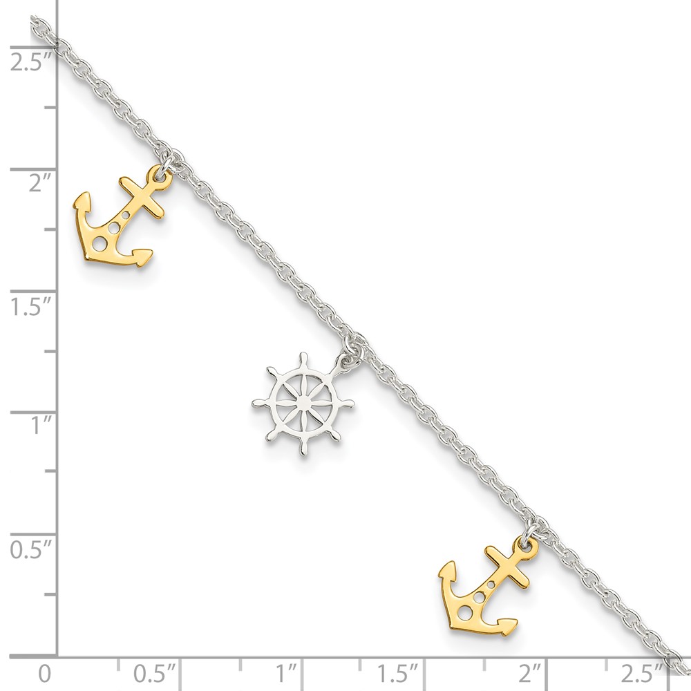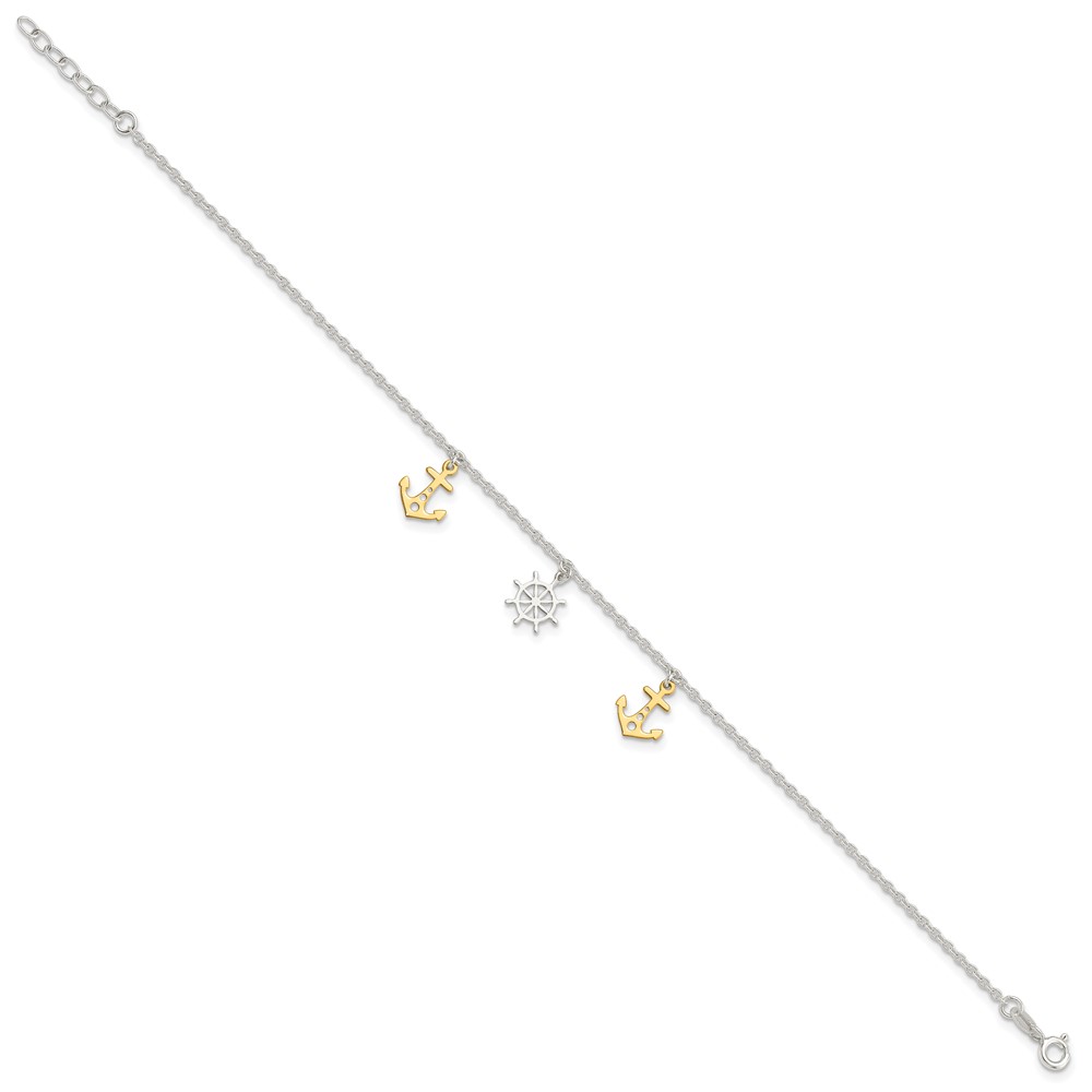 Sterling Silver Gold-tone Anchor/Ship's Wheel 9 inch Plus 1 inch Extender - Total 10 inch Anklet