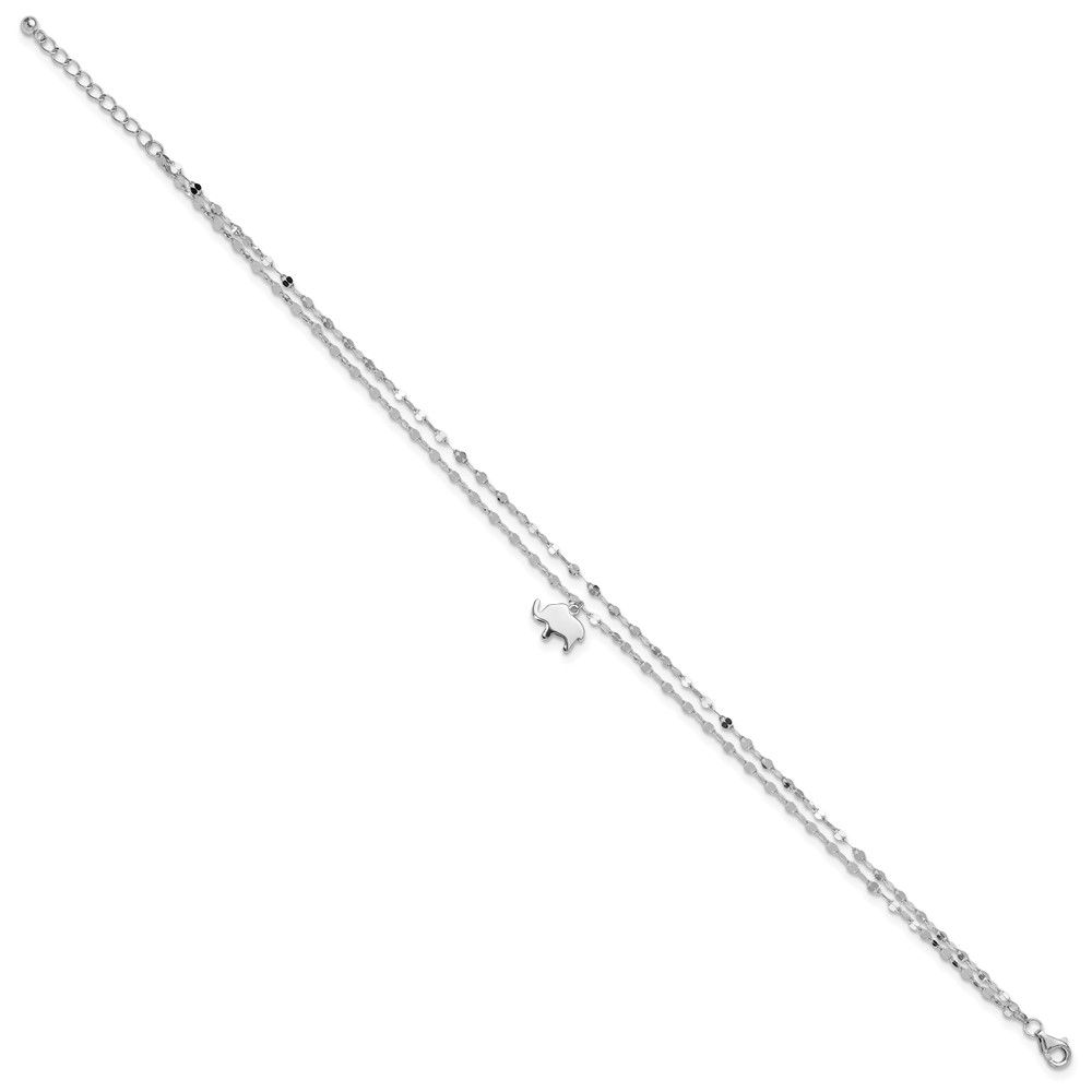 Sterling Silver Rhodium-plated Elephant 2-Strand 8.75 inch Plus 1 inch Extender - Total 9.75 inch Anklet