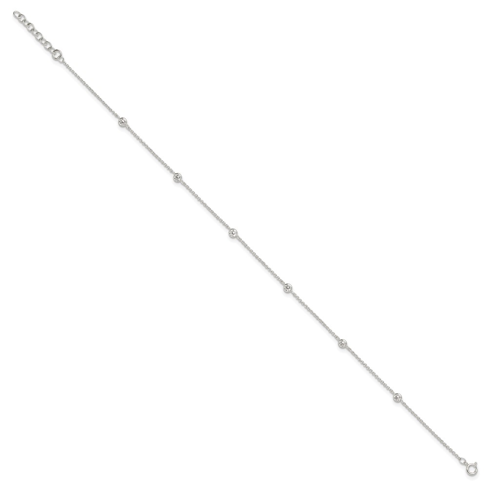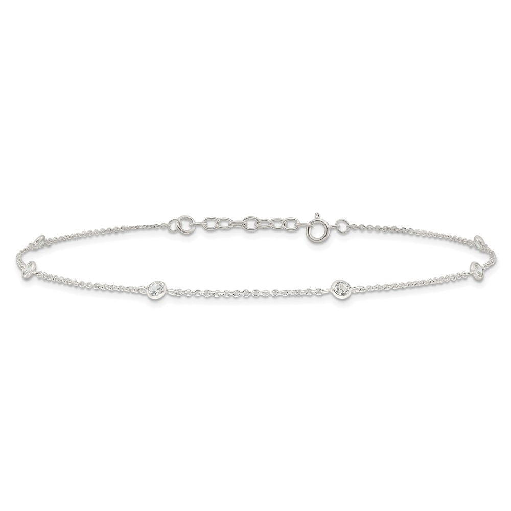Sterling Silver E-coated CZ 6-Station 9.75 inch Plus 1 inch Extender - Total 10.75 inch Anklet