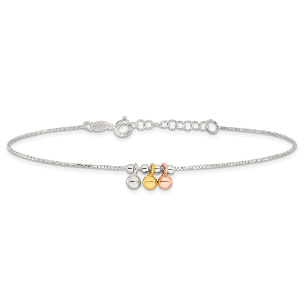 Sterling Silver Rose-tone and Gold-Tone Beads 9 inch Plus 1 inch Extender - Total 10 inch Anklet
