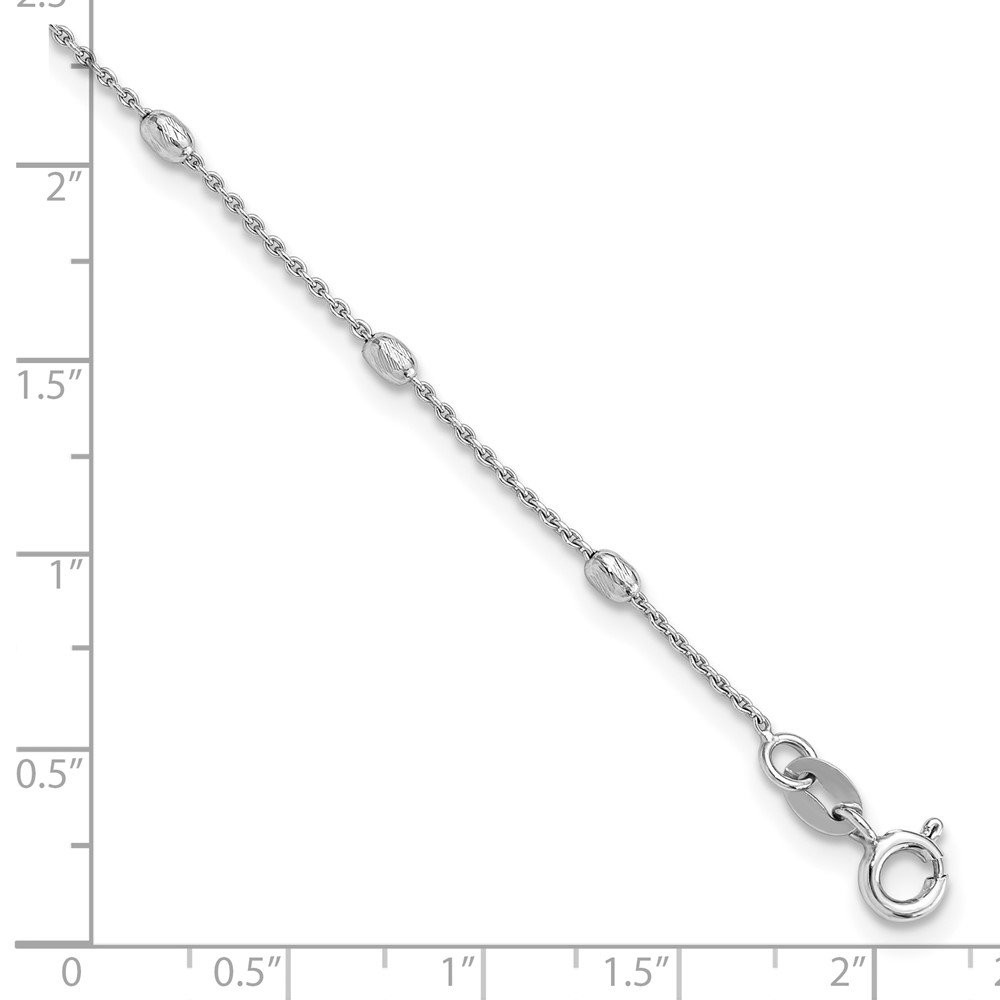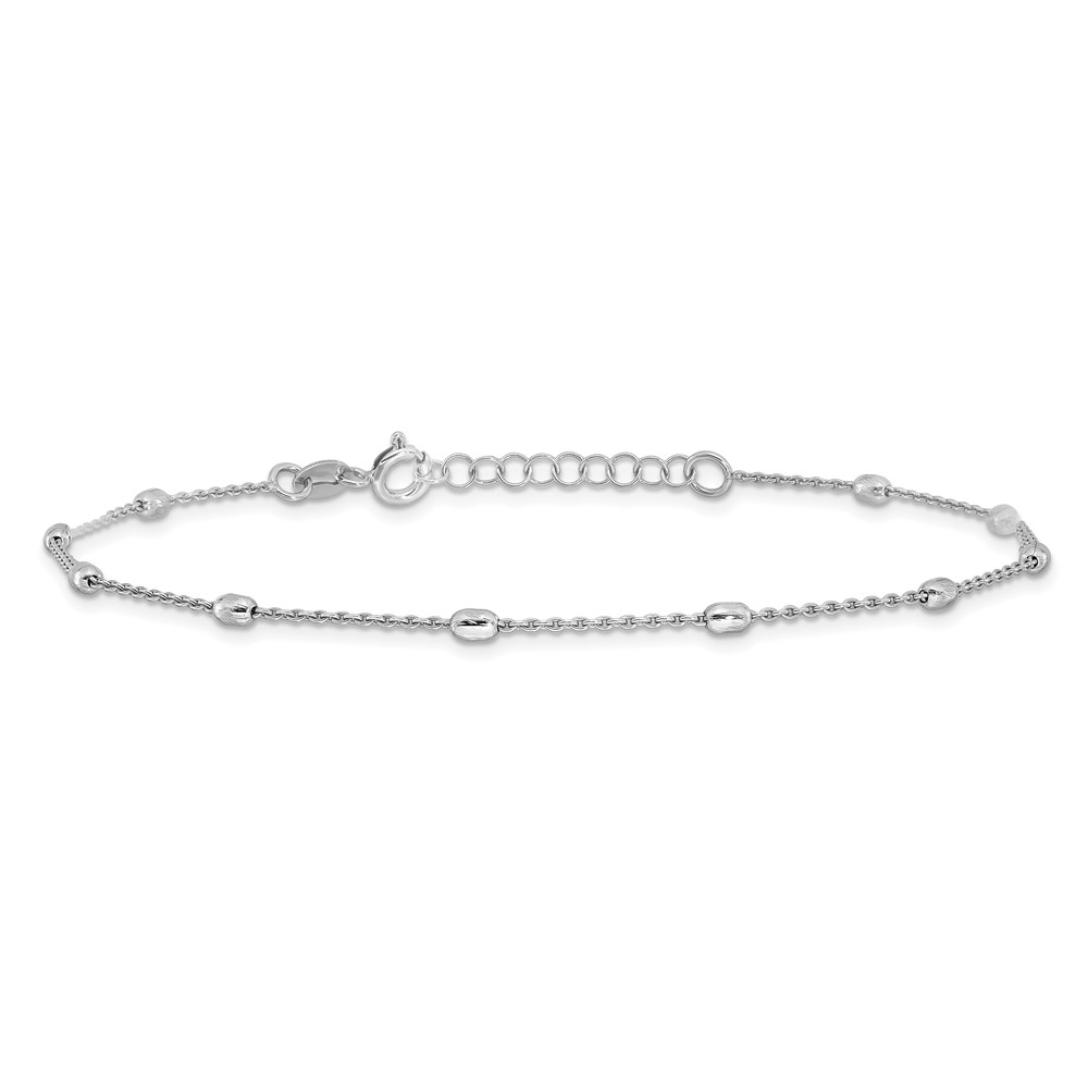 Sterling Silver Rhodium-plated Oval Bead 9 inch Plus 1 inch Extender - Total 10 inch Anklet