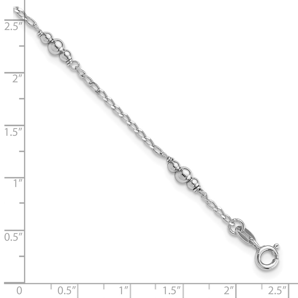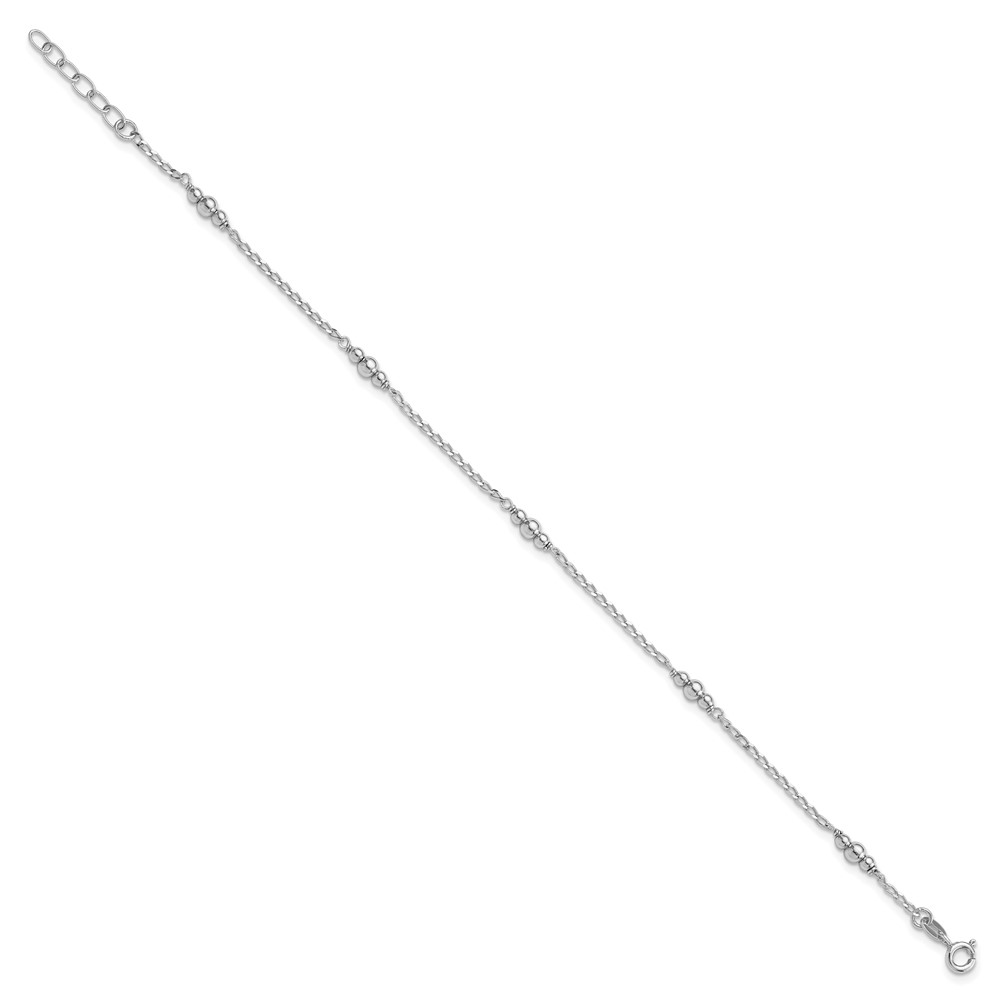 Sterling Silver Rhodium-plated Beads 9 inch Plus 1 inch Extender - Total 10 inch Anklet