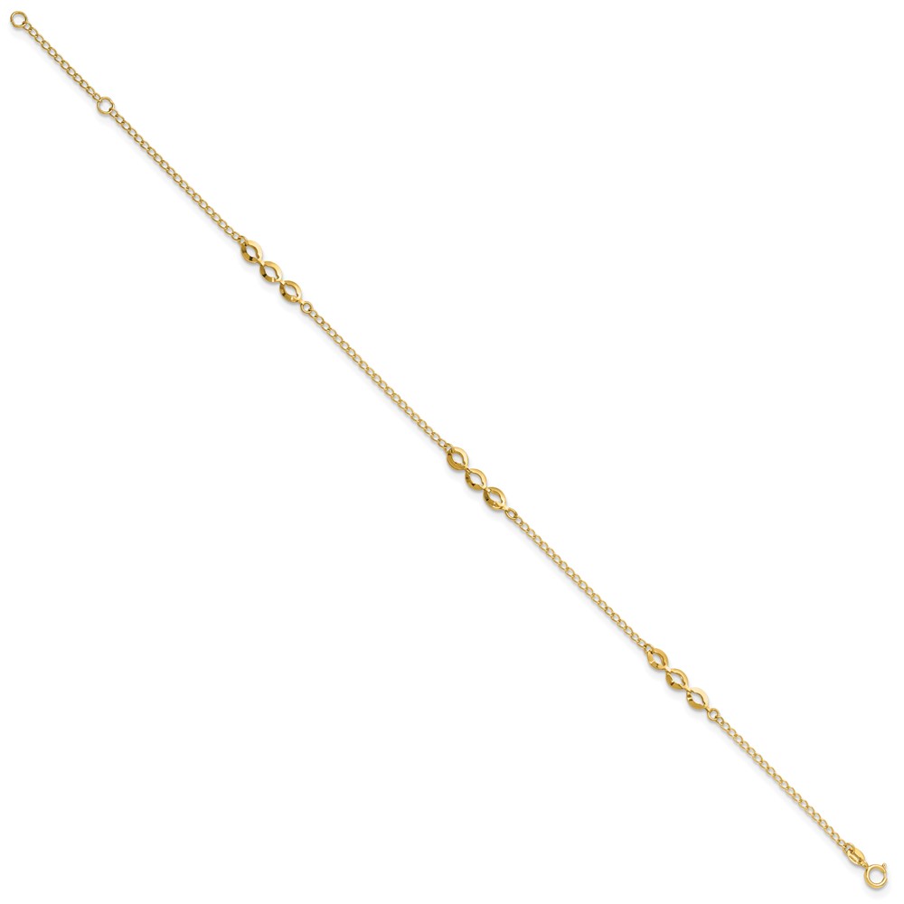 Leslie's 14K Polished Ovals 3-Station 9 inch Plus 1 inch Extender - Total 10 inch Anklet