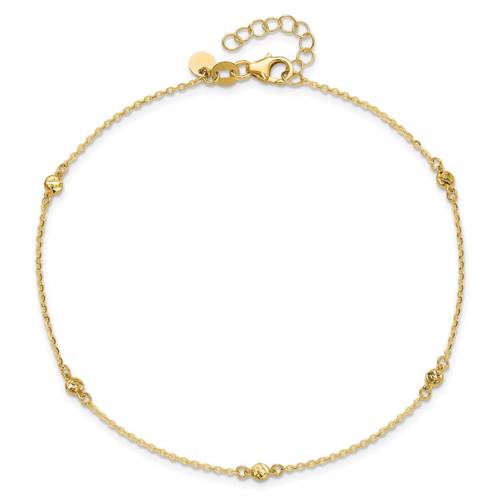 Leslie's 14k Diamond-cut Bead 5-Station 9 inch Plus 1 inch Extender - Total 10 inch Anklet