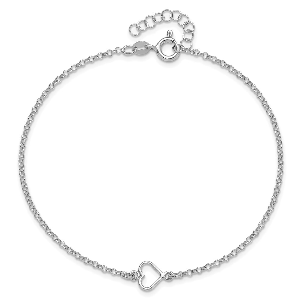 Leslie's Sterling Silver Rhodium-plated Open Heart 9 inch Plus 1 inch Extender - Total 10 inch Anklet