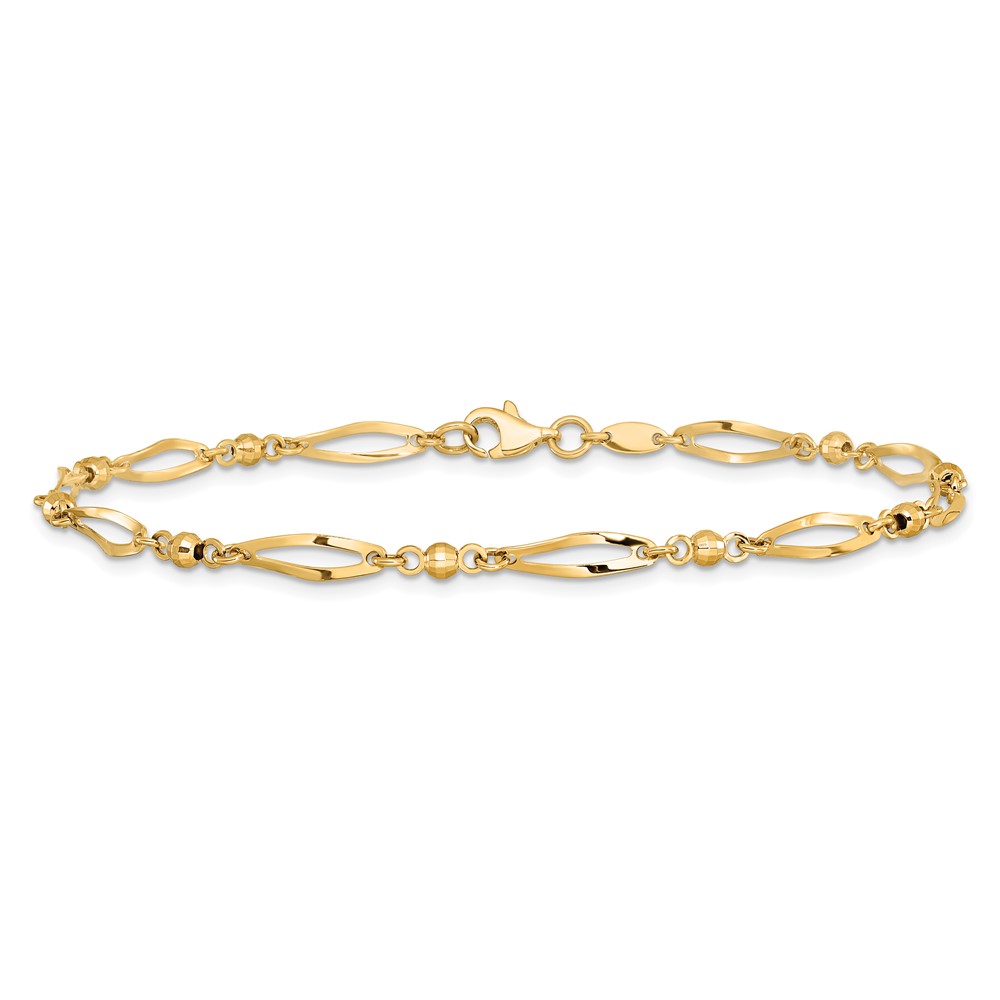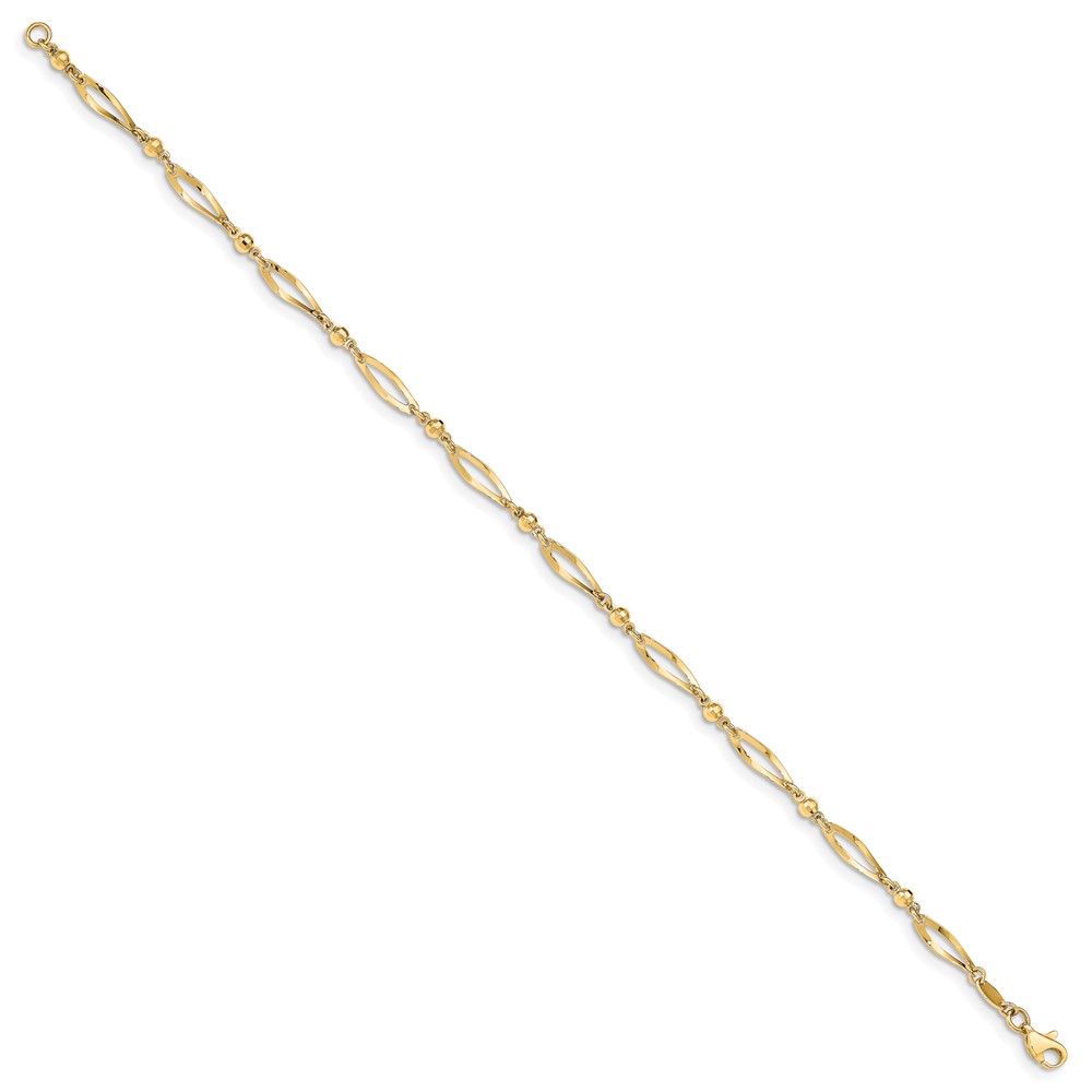 14k Polished Twisted Oval and Mirror Beads 9 inch Anklet