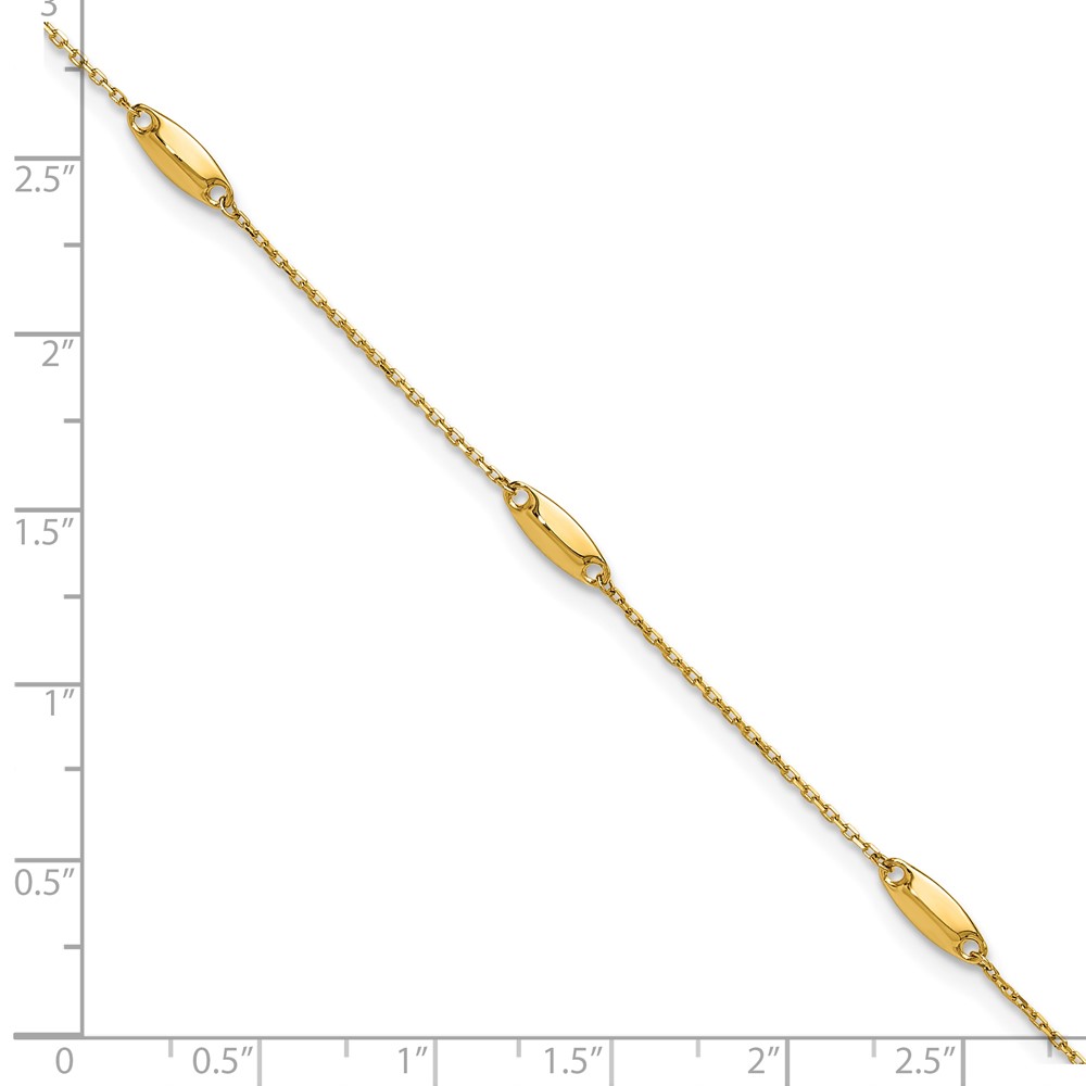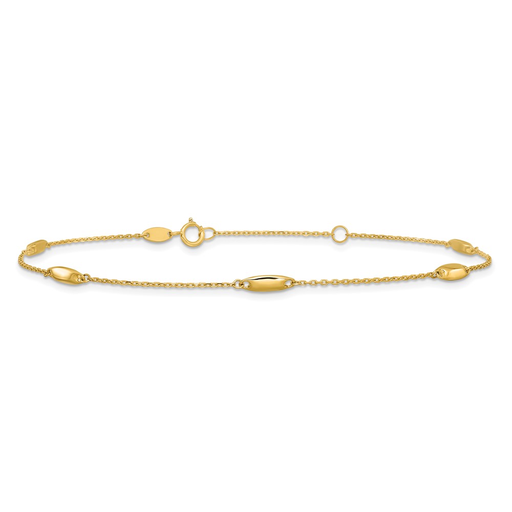 Leslie's 14K Oval Bead 5-Station 9 inch Plus 1 inch Extender - Total 10 inch Anklet