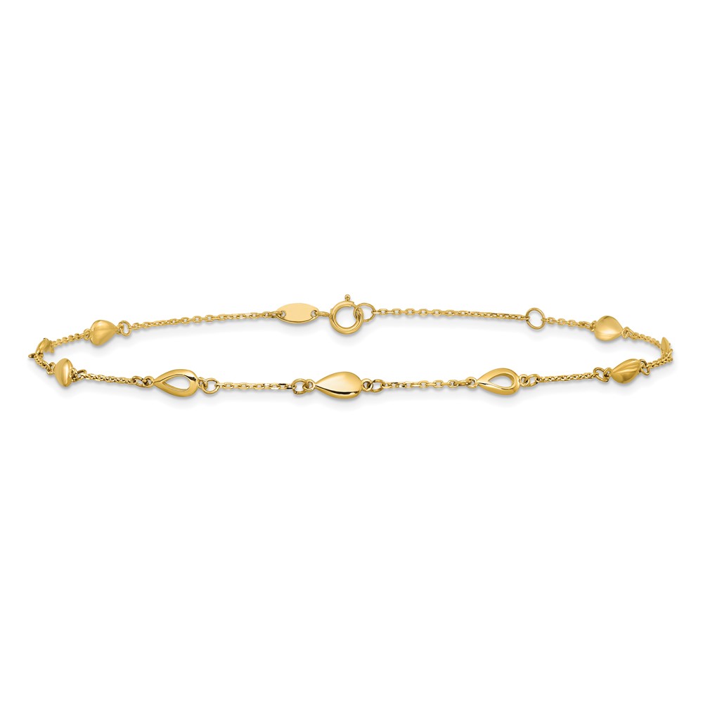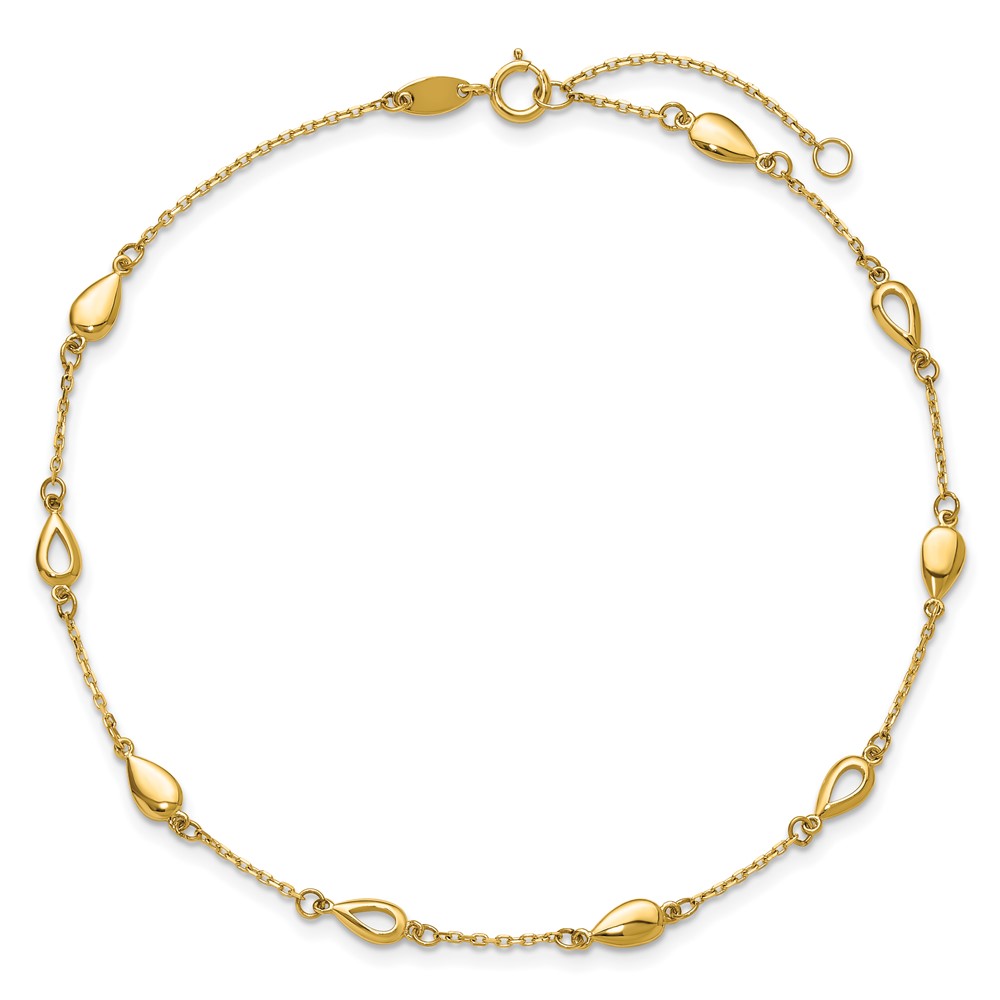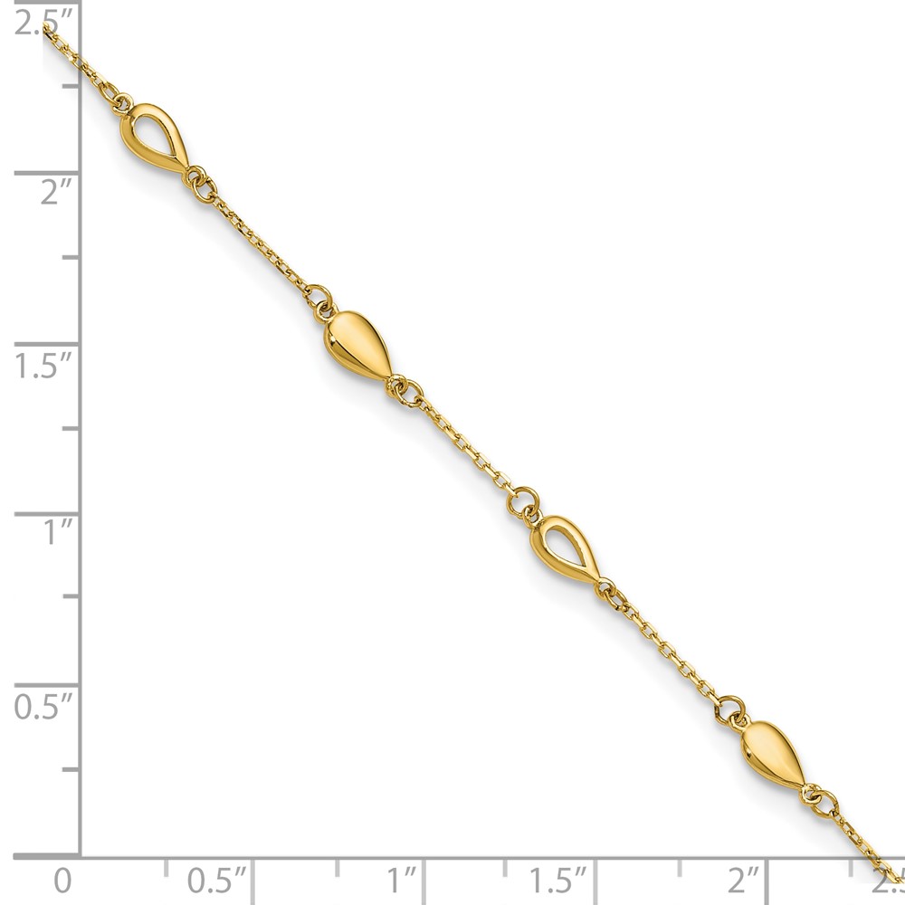 Leslie's 14K Polished Teardrop 9 inch Plus 1 inch Extender - Total 10 inch Anklet