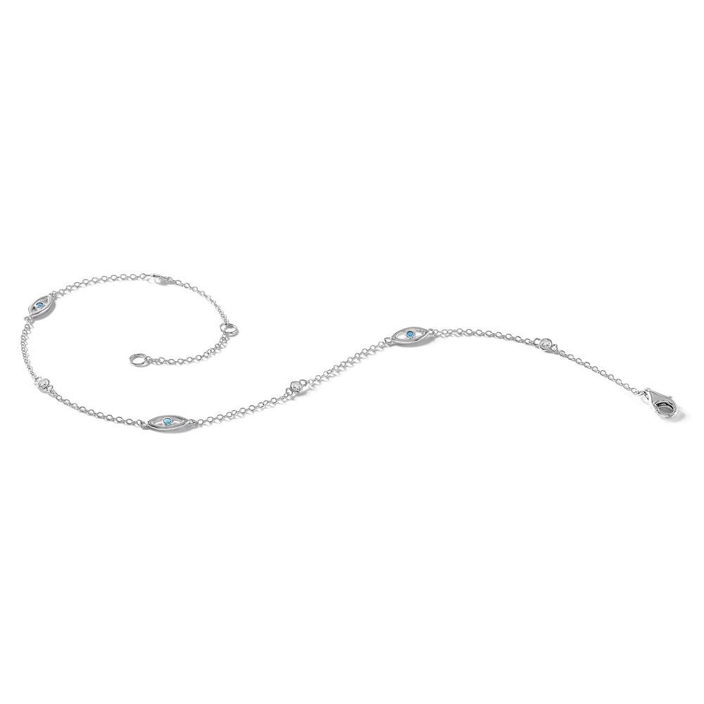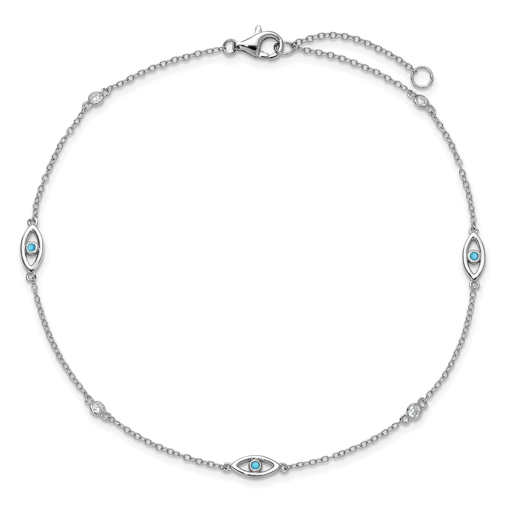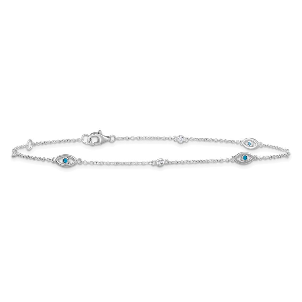 Cheryl M Sterling Silver Rhodium-plated Polished Blue Glass and CZ Evil Eye 9.5 Inch with 1 Inch Extension Anklet