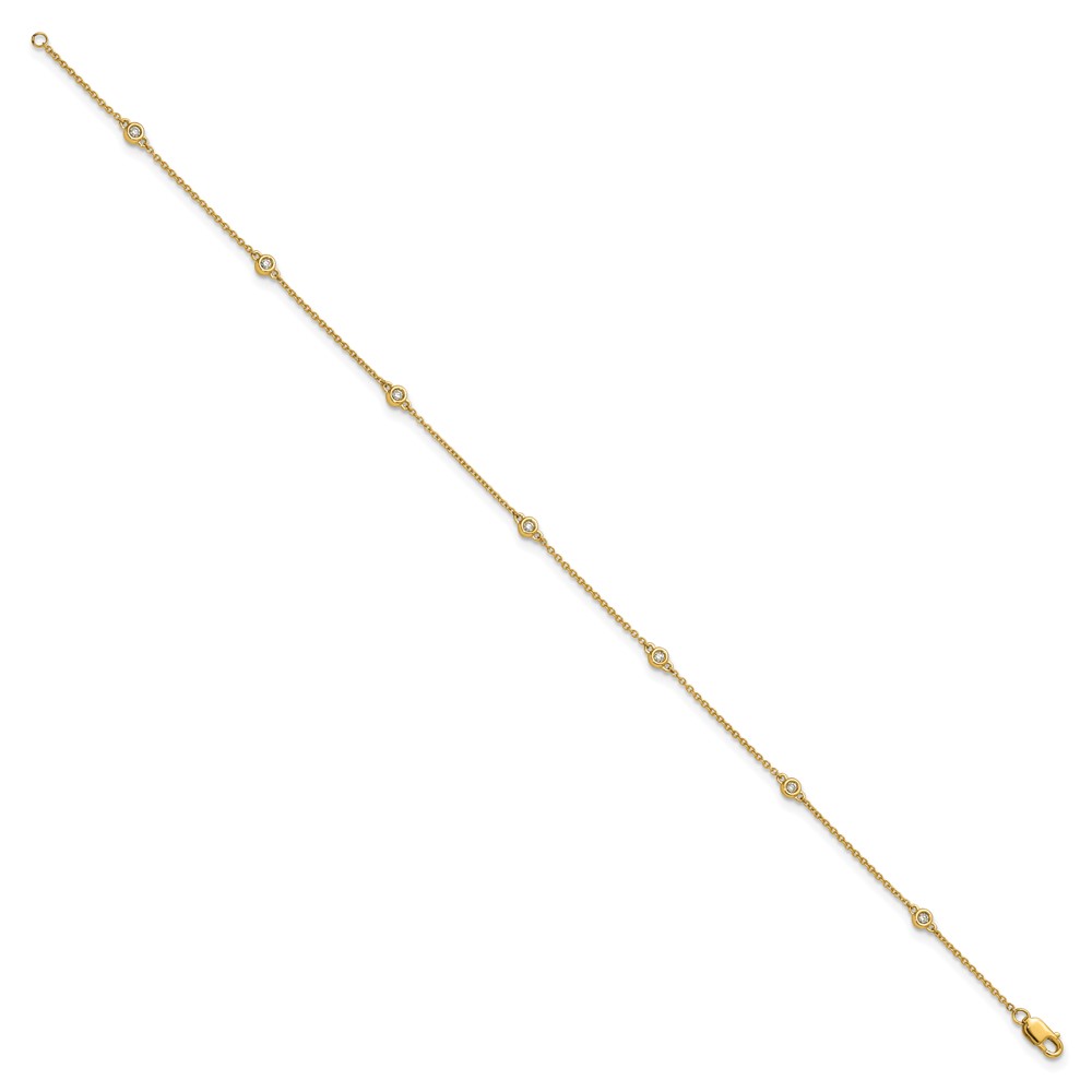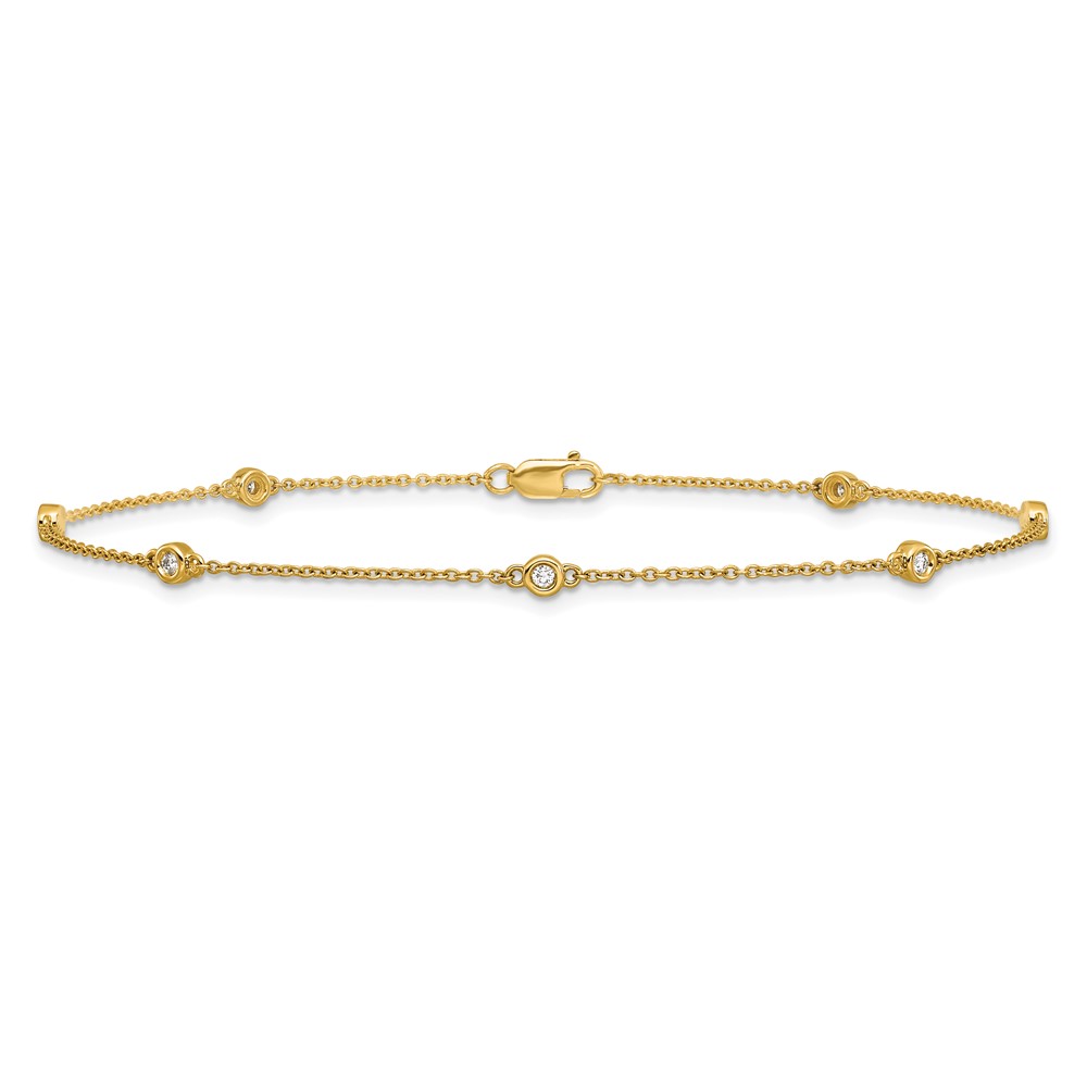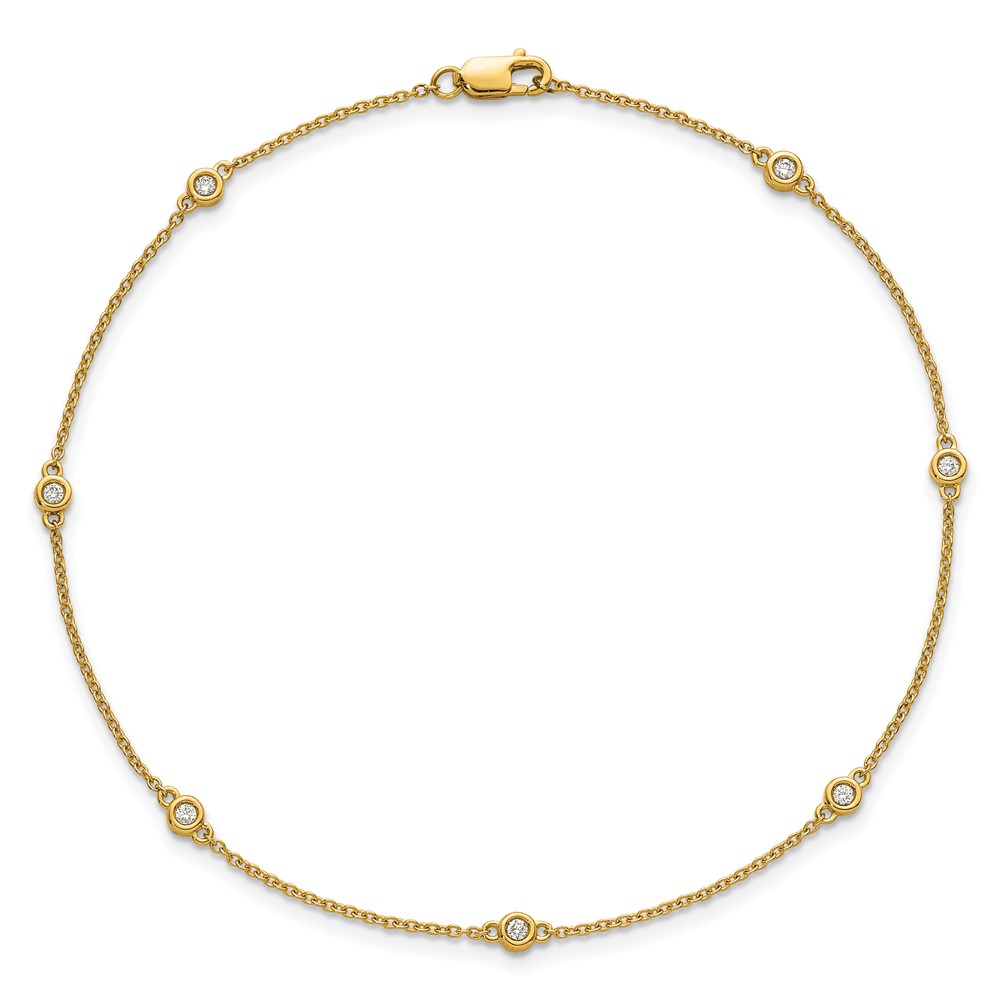 14k Complete 1/8 carat Bezel-set Diamond and Cable Chain 7-Station 9 inch Anklet