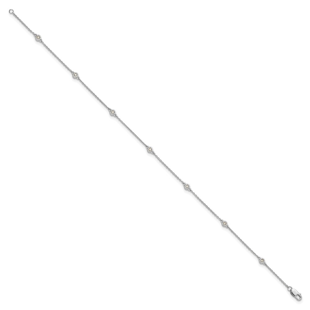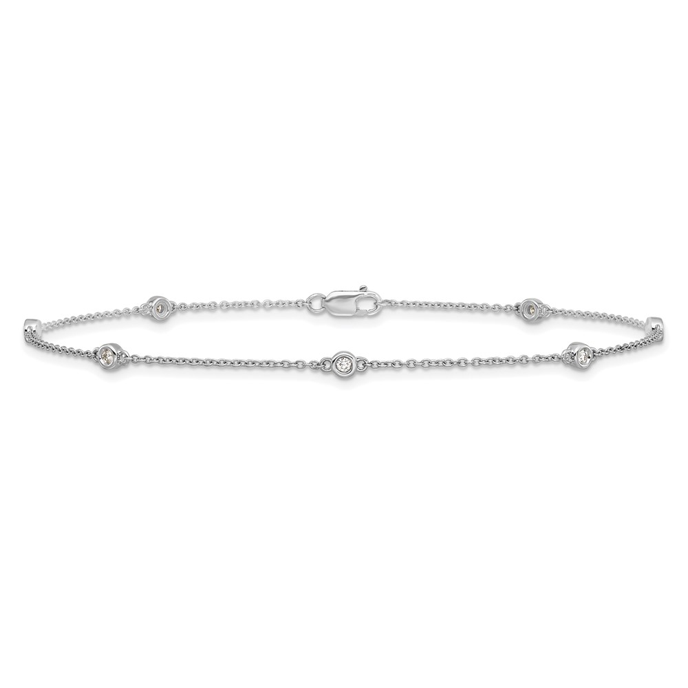 14k White Gold Complete 1/8 carat Bezel-set Diamond and Cable Chain 7-Station 9 inch Anklet