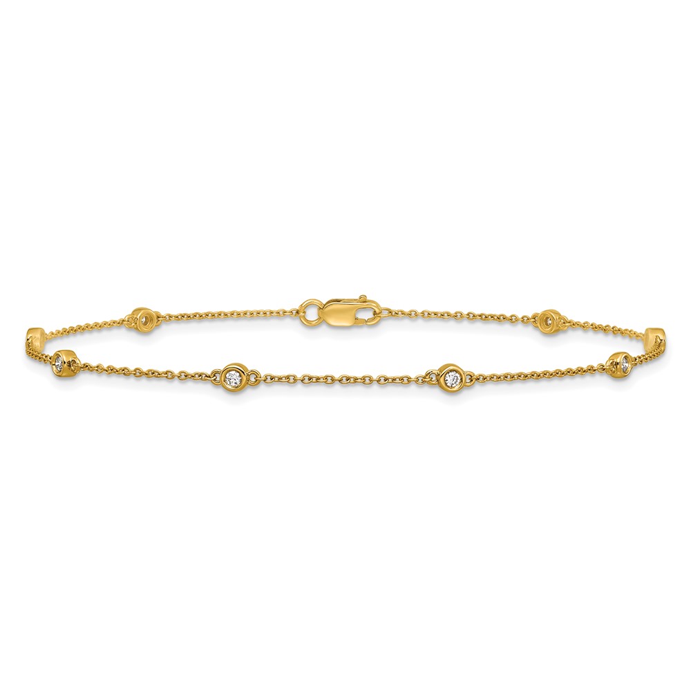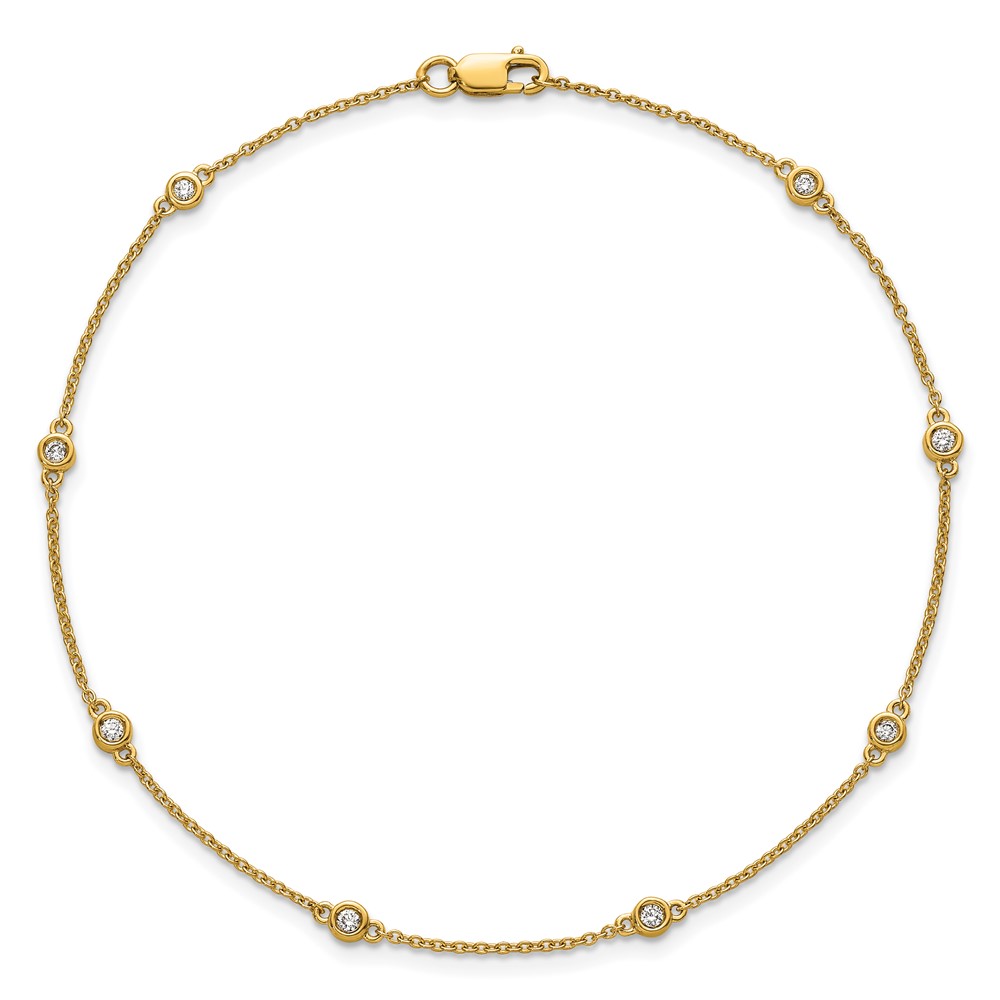 14k Complete 1/8 carat Bezel-set Diamond and Cable Chain 8-Station 9 inch Anklet