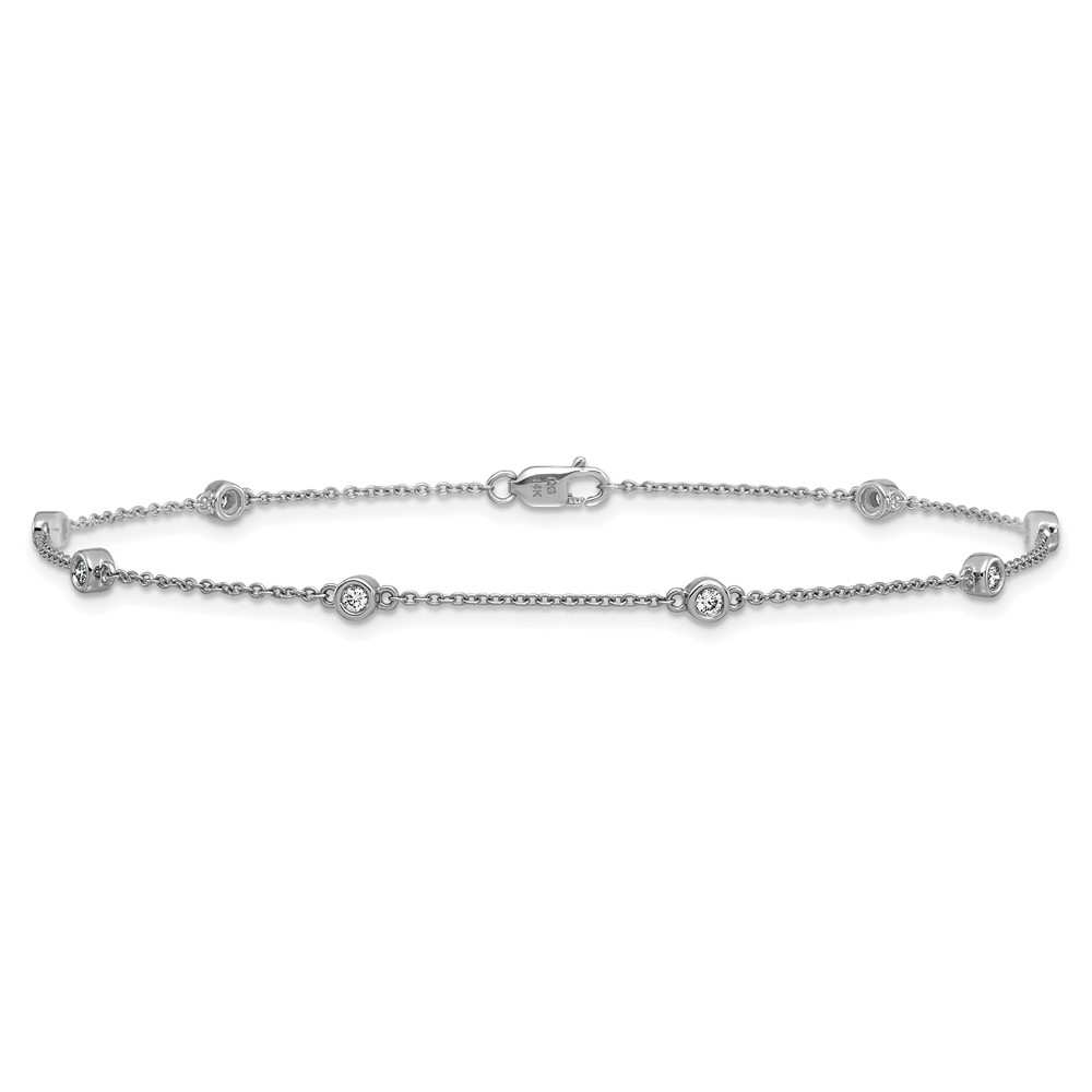 14k White Gold Complete 1/5 carat Bezel-set Diamond and Cable Chain 8-Station 9 inch Anklet