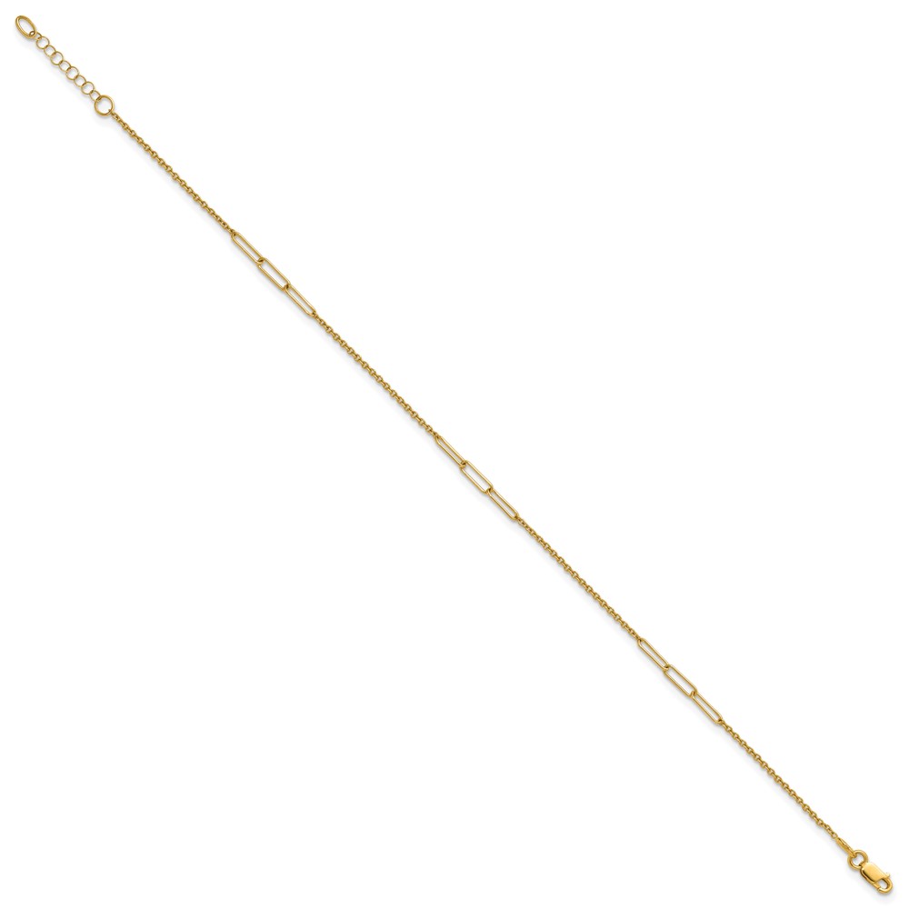 14k Polished Paper Clip and Cable Link 9 inch Plus 1 inch Extender - Total 10 inch Anklet