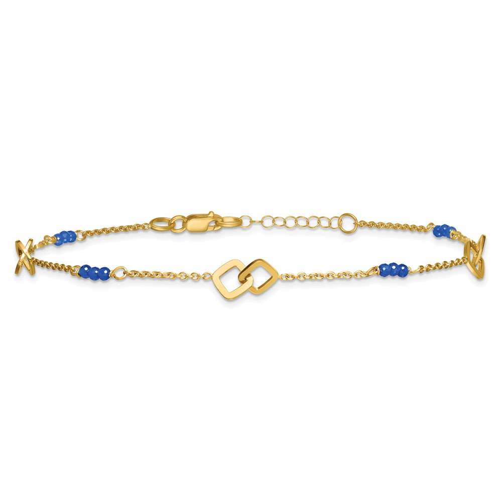 14k Polished Blue Spinel Beads and Squares 9 inch Plus 1 inch Extender - Total 10 inch Anklet