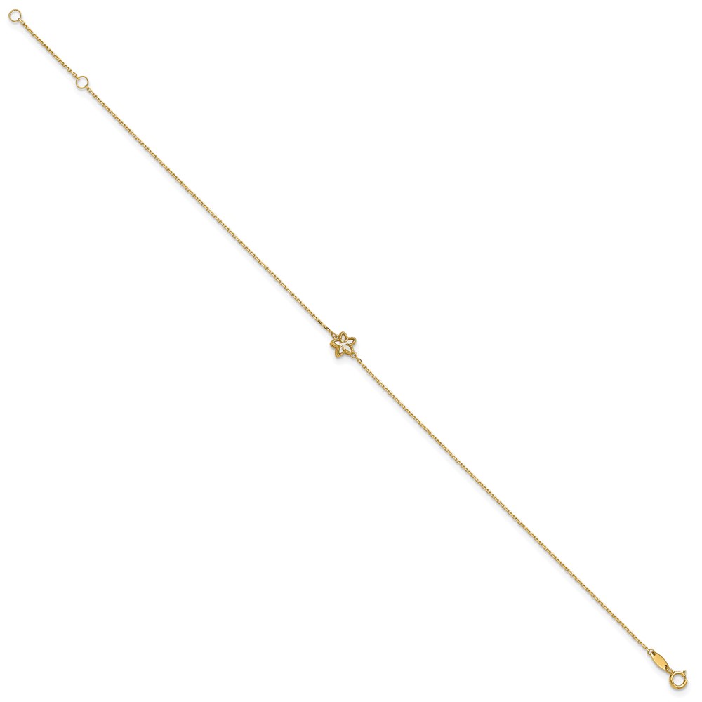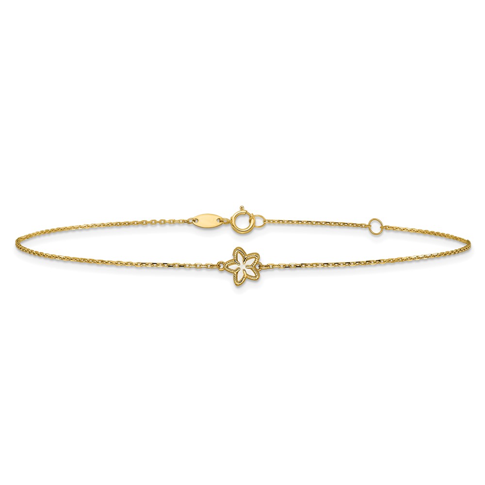 14K Polished Mother of Pearl Flower 9 inch Plus 1 inch Extender - Total 10 inch Anklet