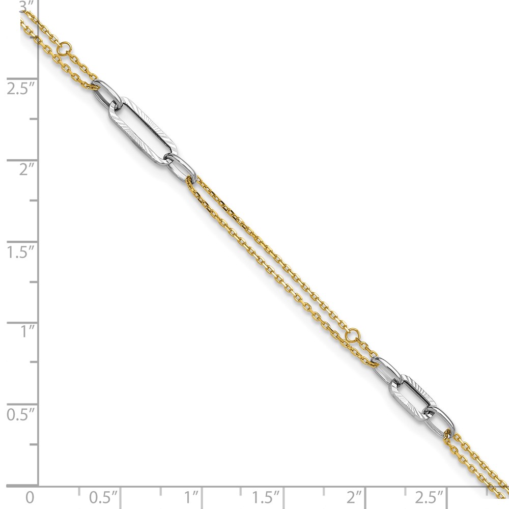 14K Two-tone Polished Diamond-cut 3-Station 9 inch Plus 1 inch Extender - Total 10 inch Anklet