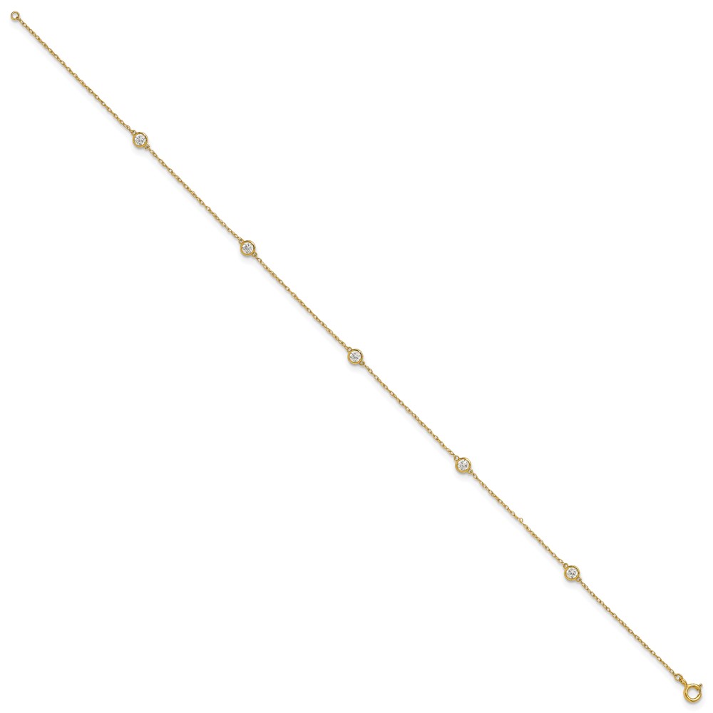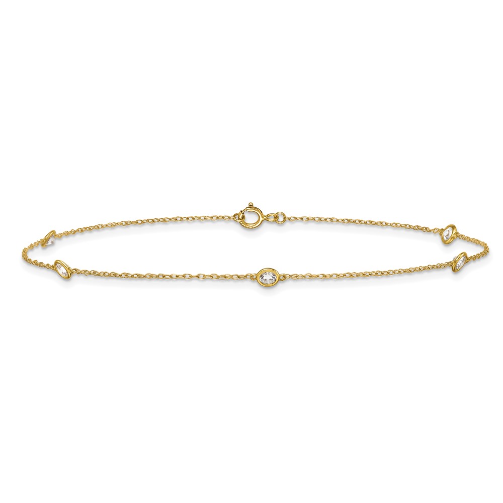 10k Polished Bezel-set 3.8mm CZ 5-Station 10 inch Anklet