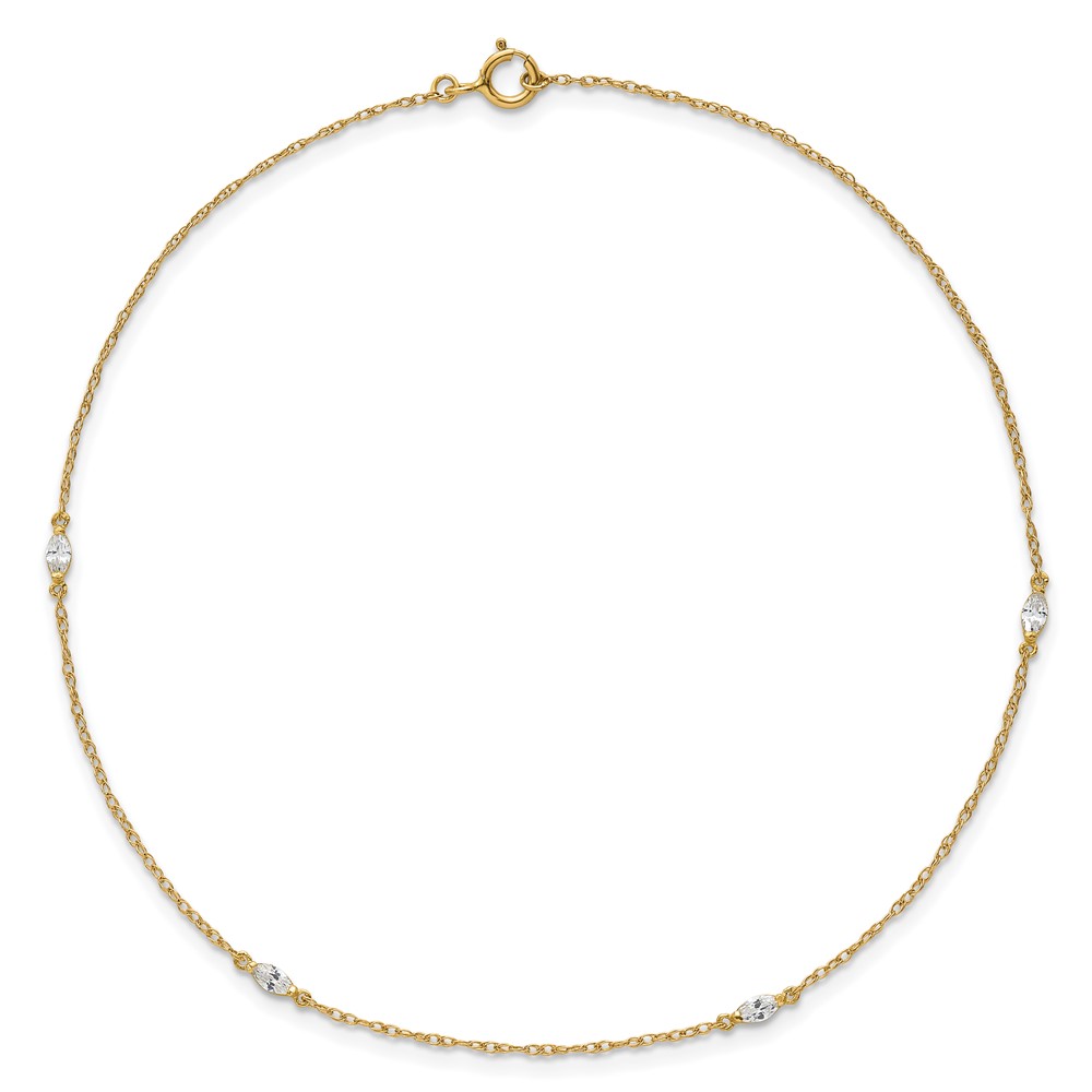 10k Polished Marquise CZ 4-Station 10 inch Anklet