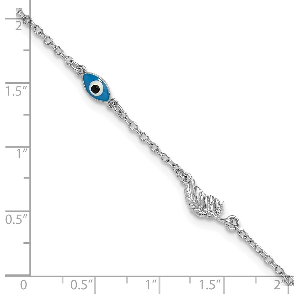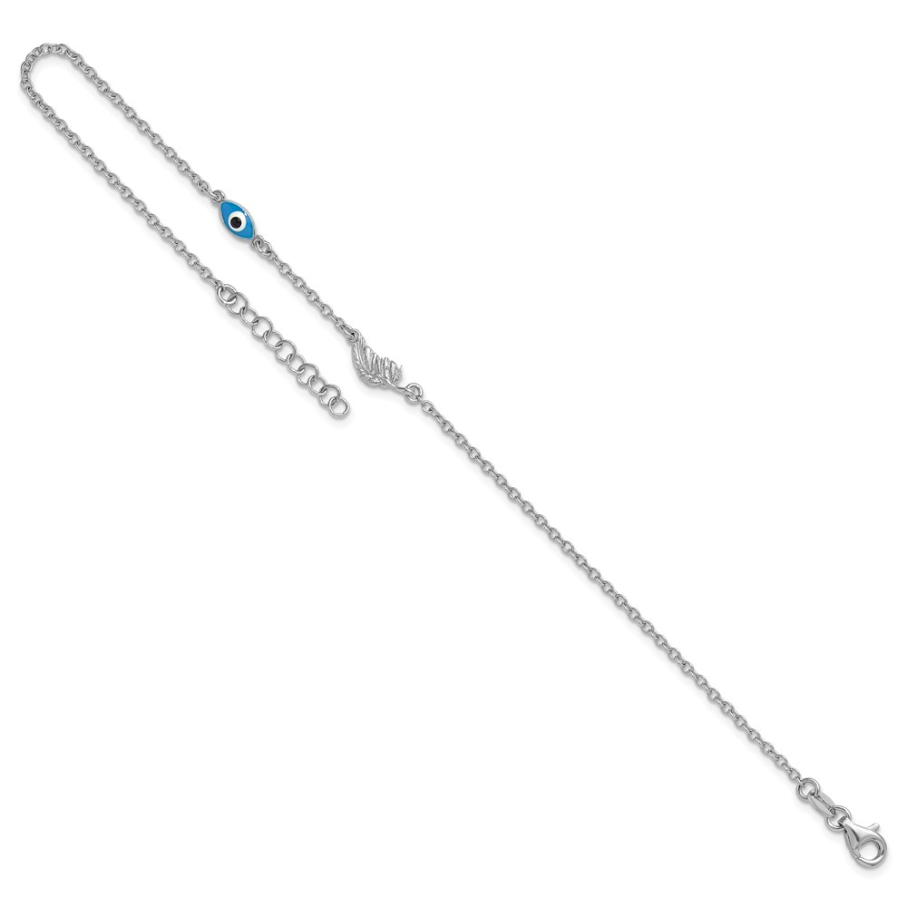 Sterling Silver Rhodium-plated Enamel Eye and Leaf 9 inch Plus 1 inch Extender - Total 10 inch Anklet