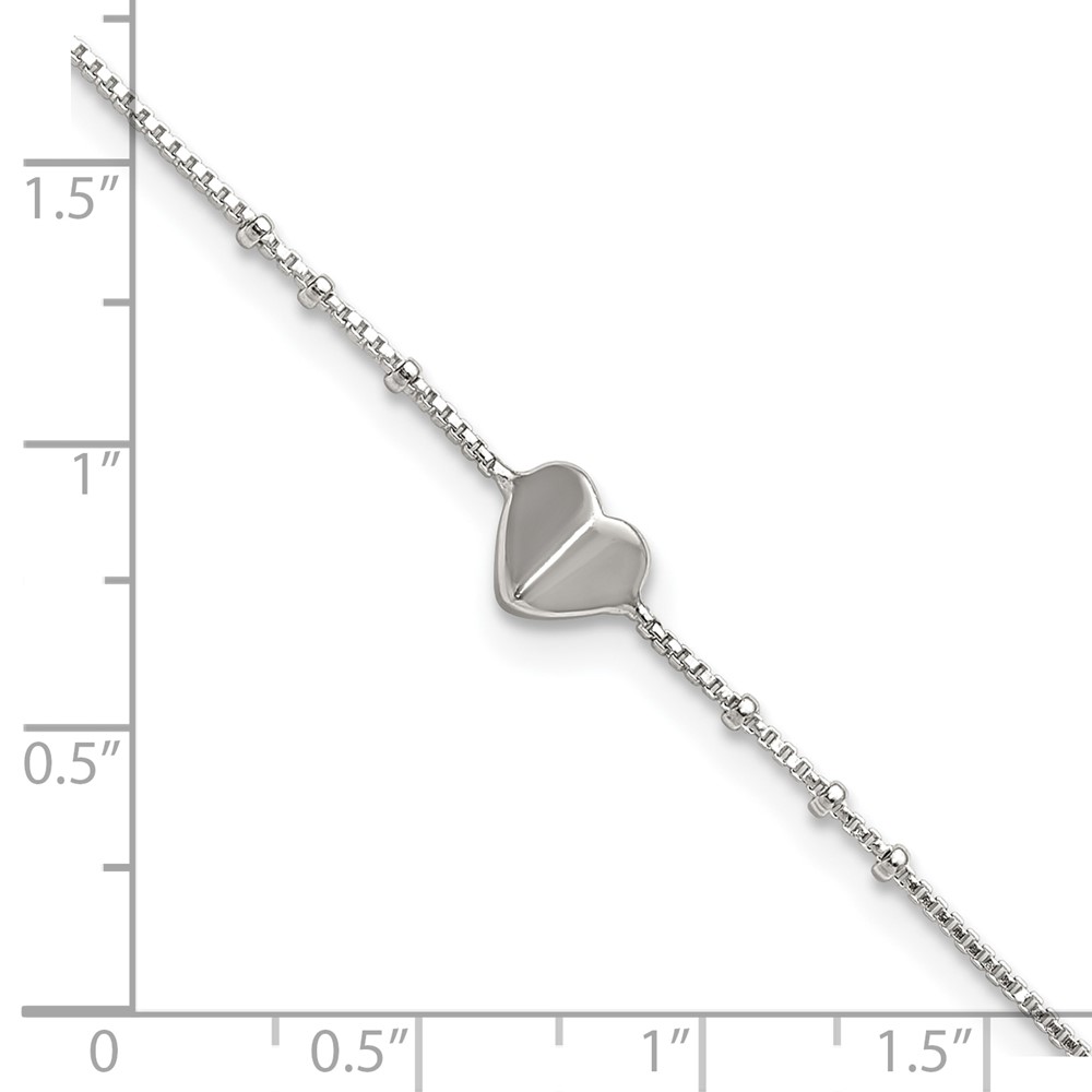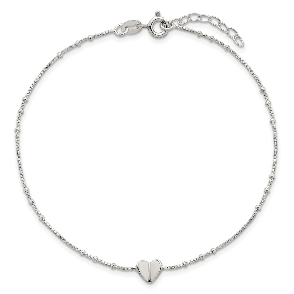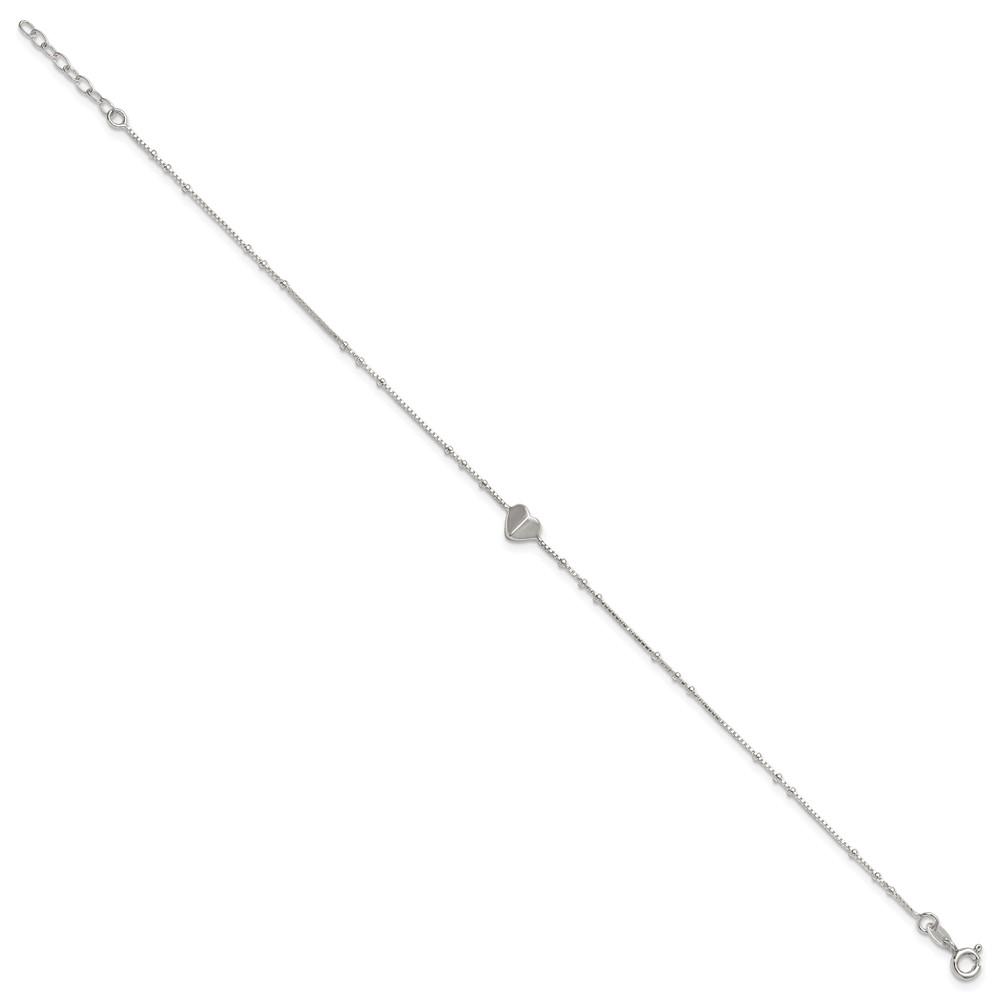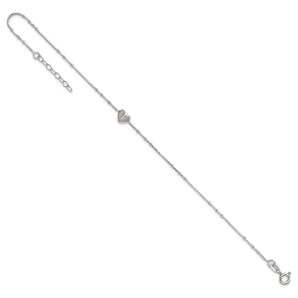 Sterling Silver Heart and Beads 9 inch with 1 inch Extender - Total 10 inch Anklet
