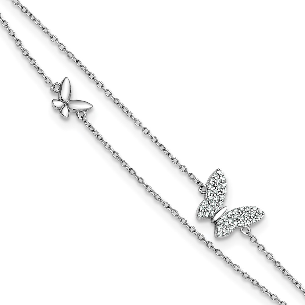 Sterling Silver Rhodium-plated CZ Butterflies 2-Strand 9 inch Plus 1 inch Extender - Total 10 inch Anklet