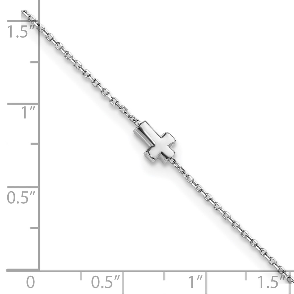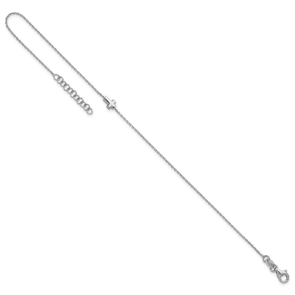 Sterling Silver Rhodium-plated Cross 9 inch Plus 1 inch Extender - Total 10 inch Anklet