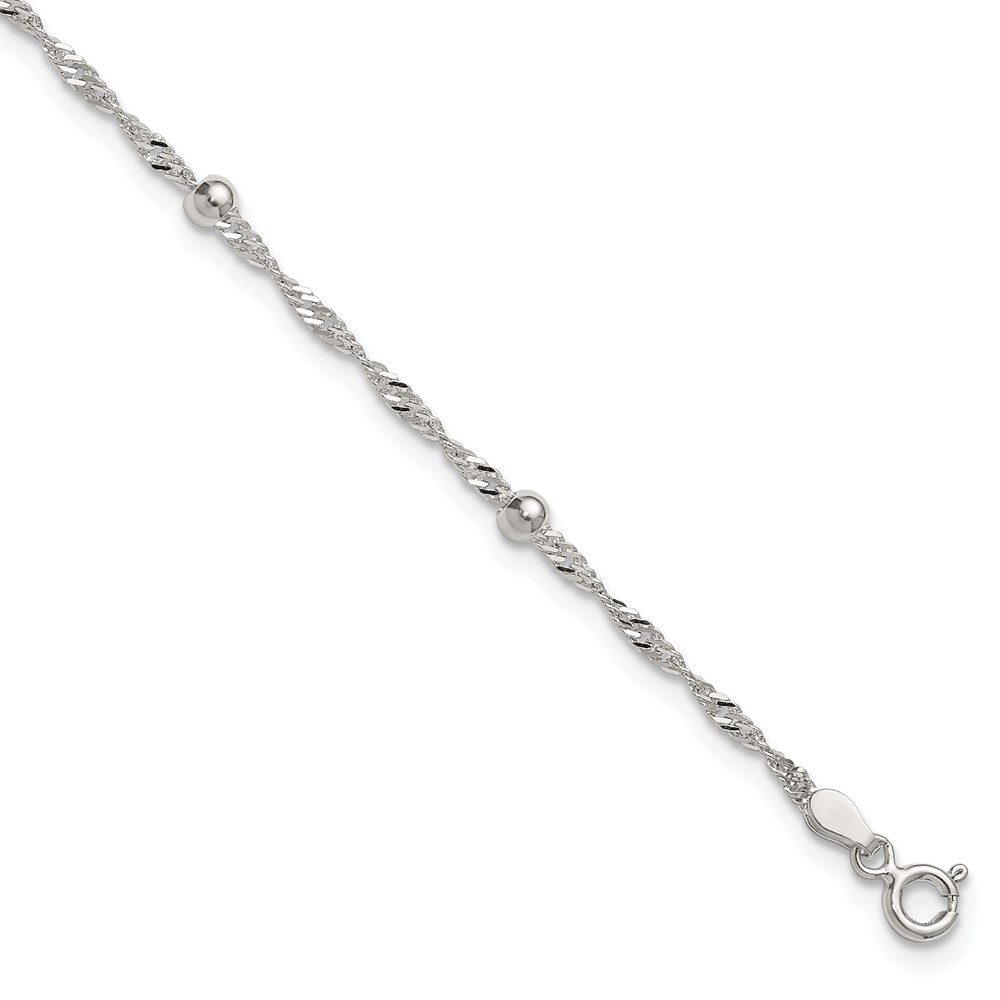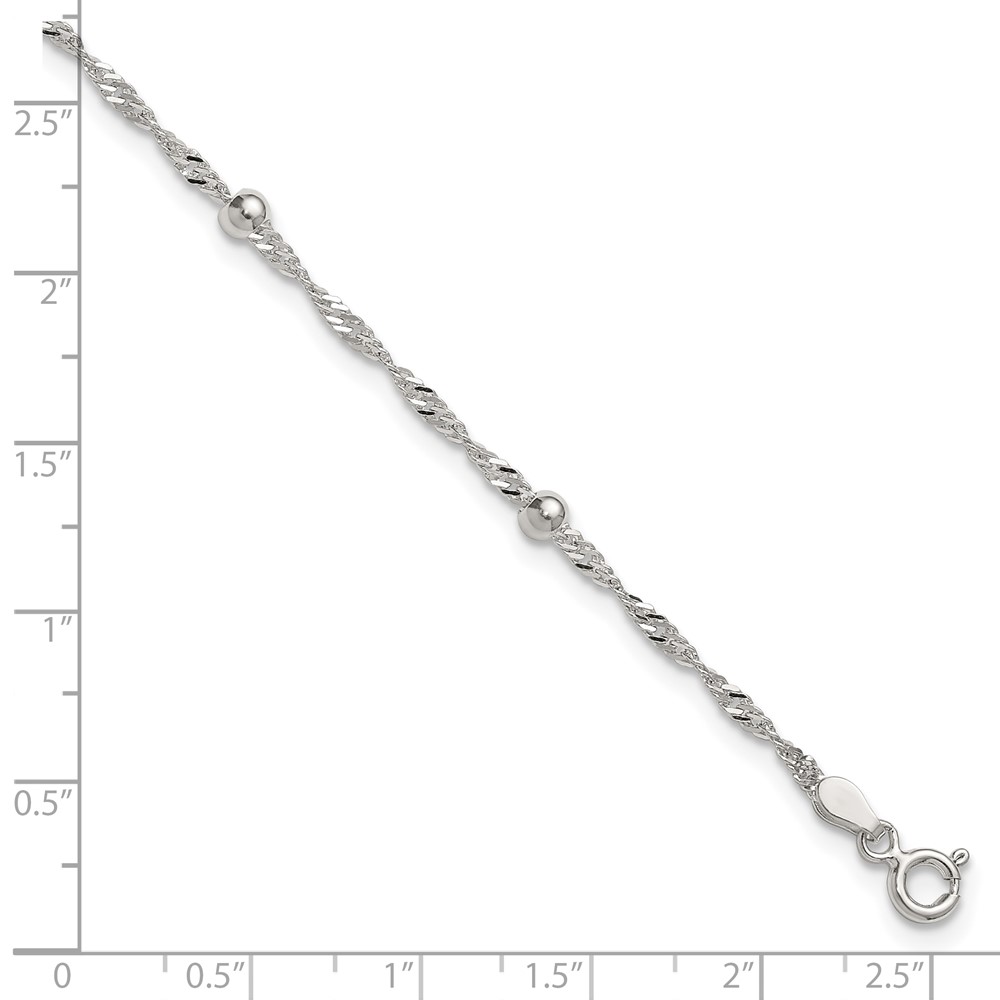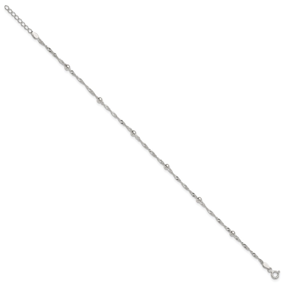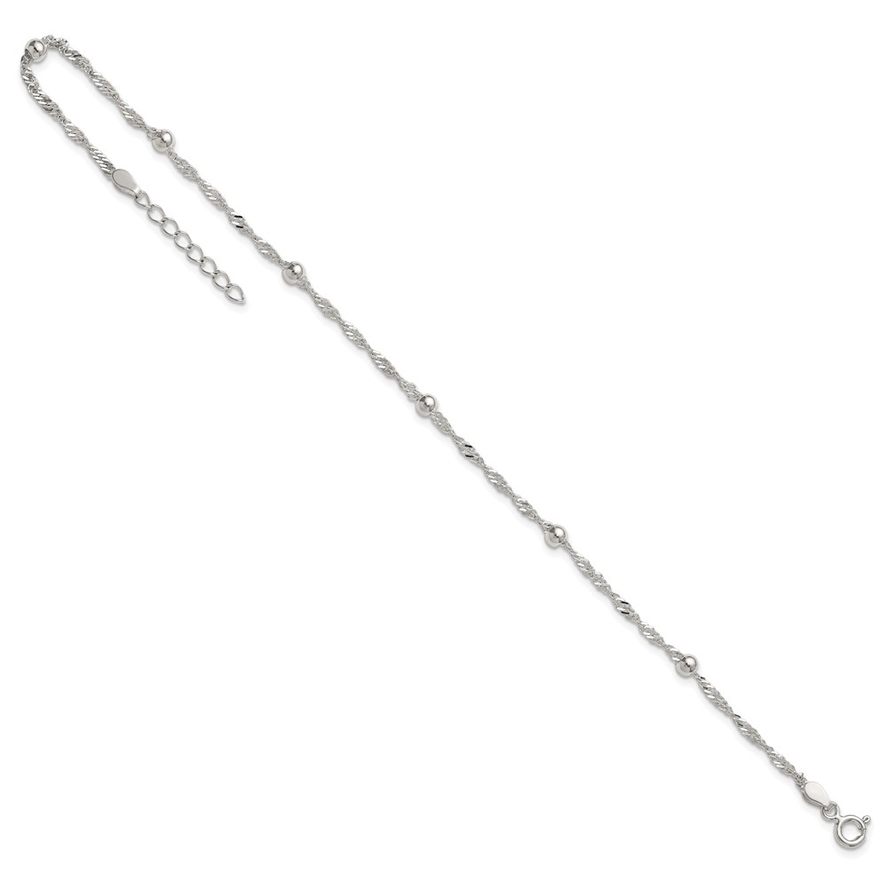 Sterling Silver Beaded 6-Station 9 inch Plus 1 inch Extender - Total 10 inch Anklet