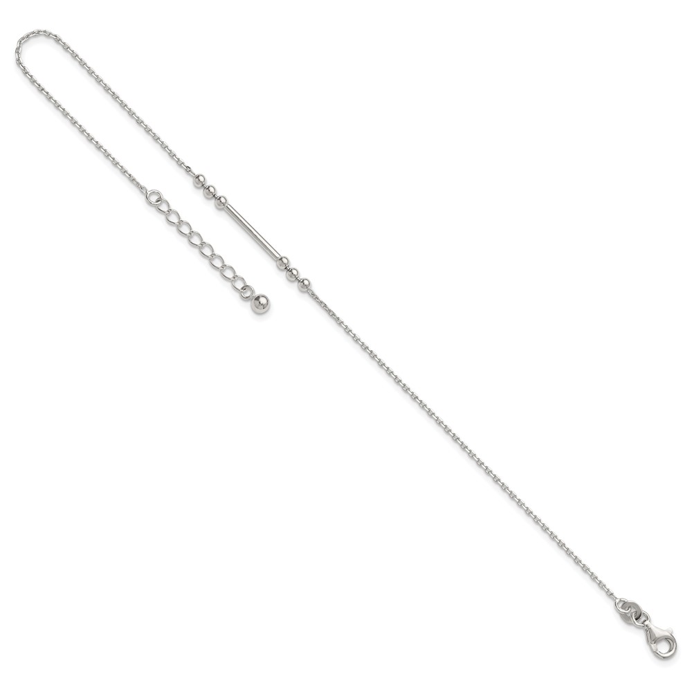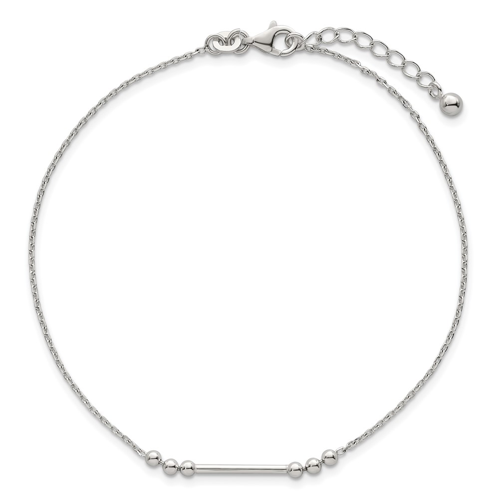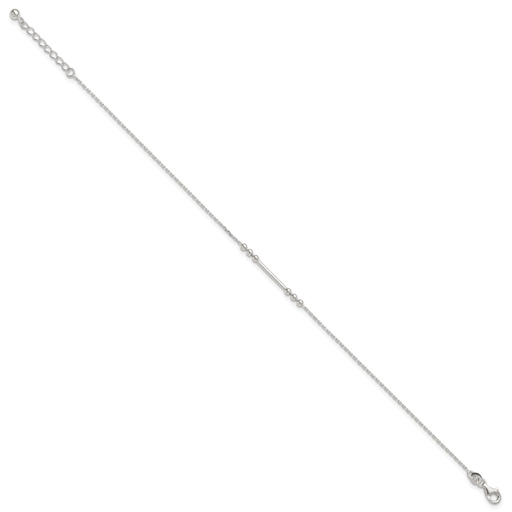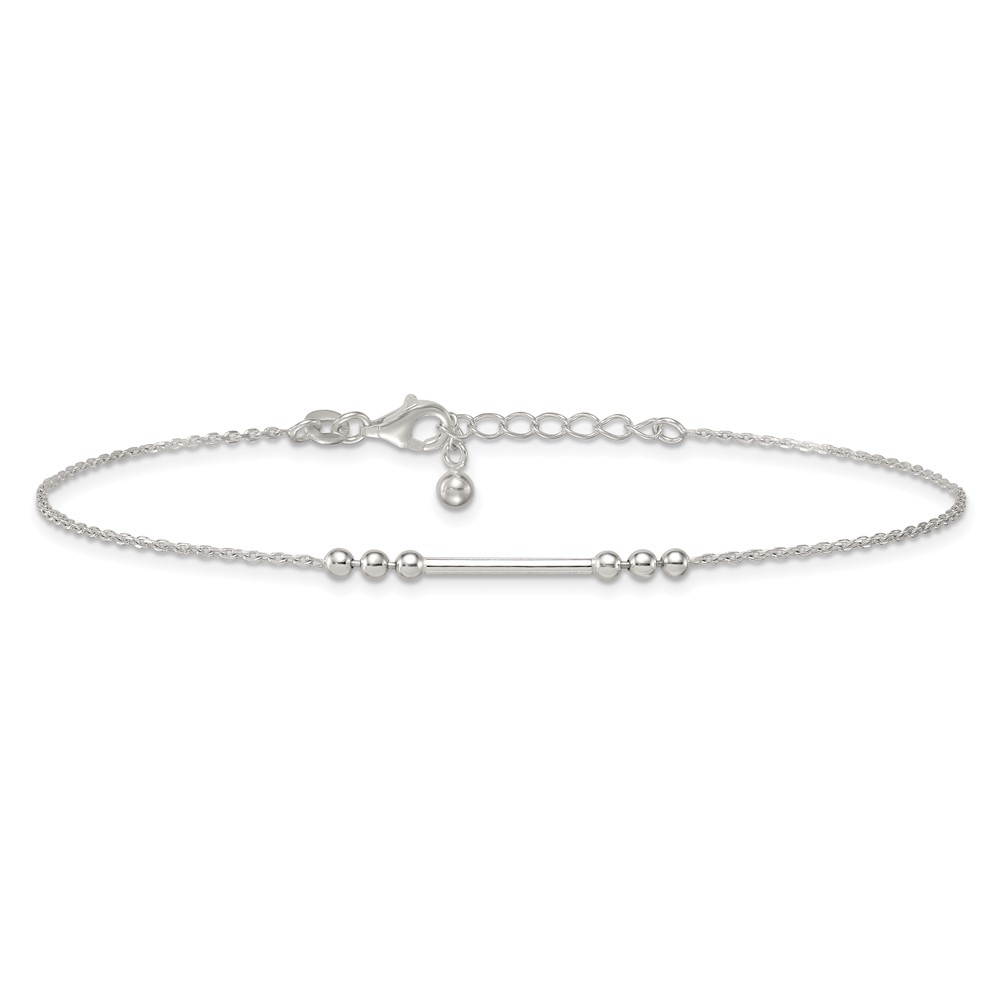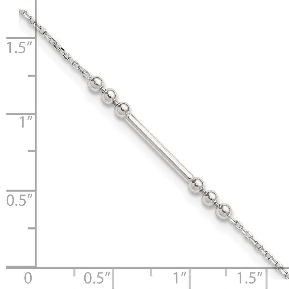 Sterling Silver Beaded and Bar 9 inch Plus 1 inch Extender - Total 10 inch Anklet
