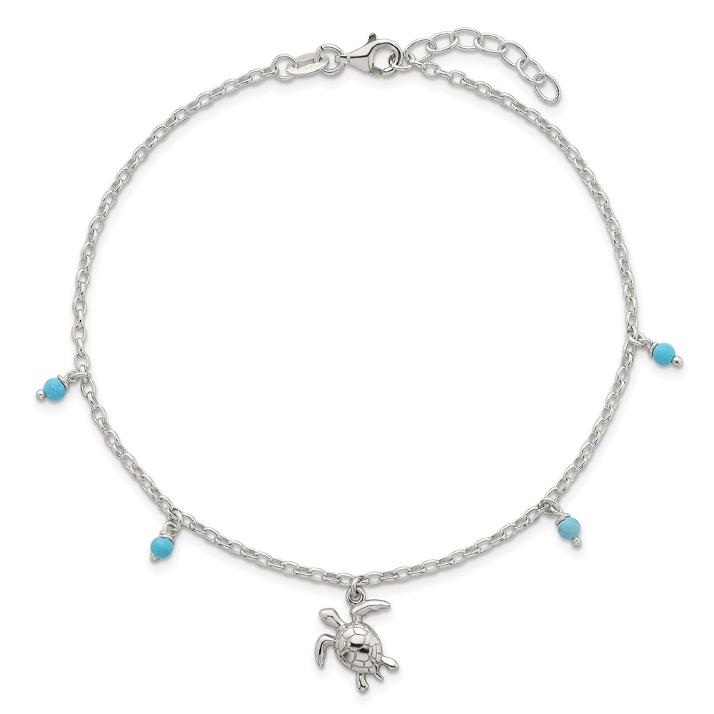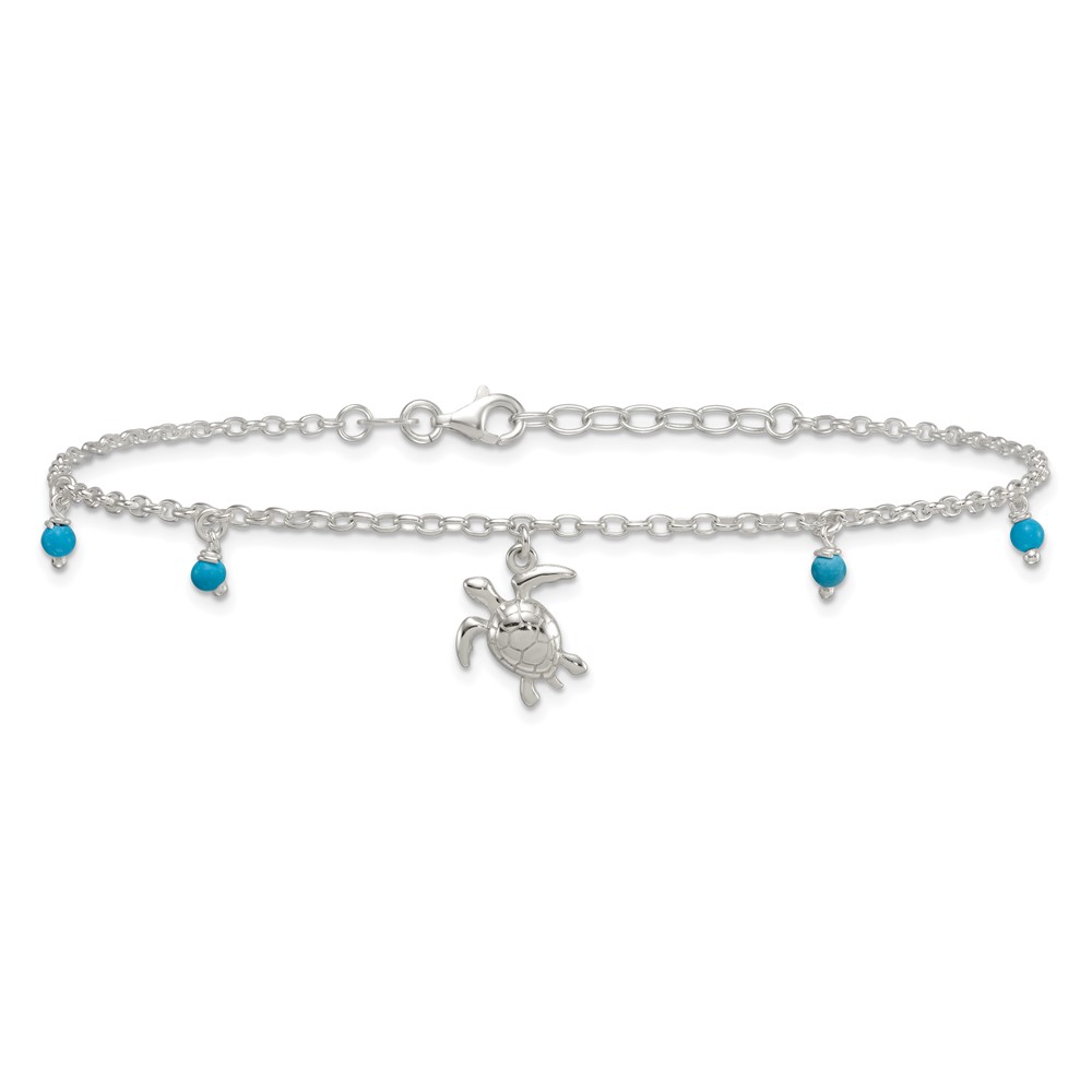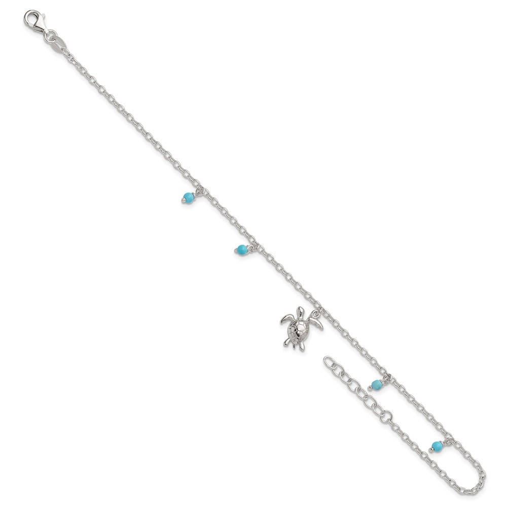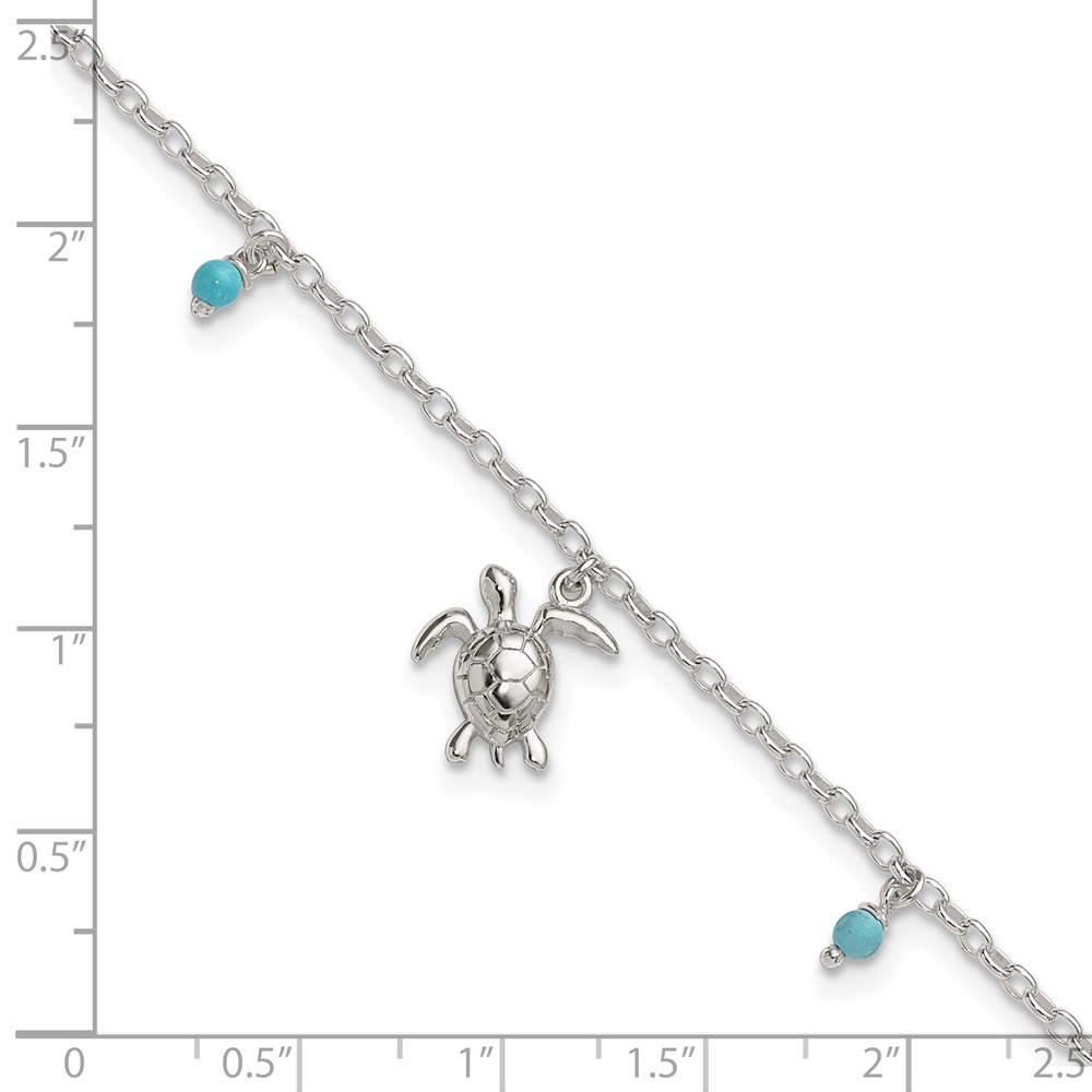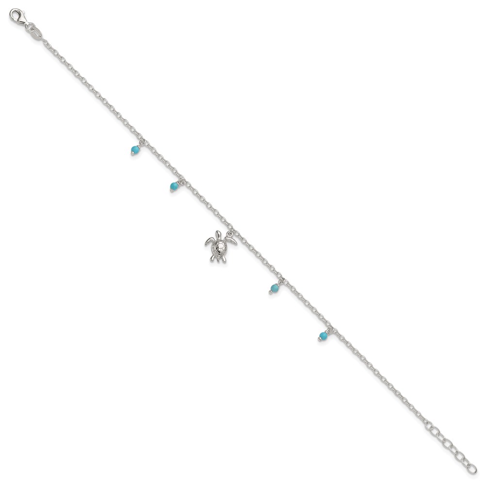 Sterling Silver Turquoise Beads and Turtle 9 inch Plus 1 inch Extender - Total 10 inch Anklet