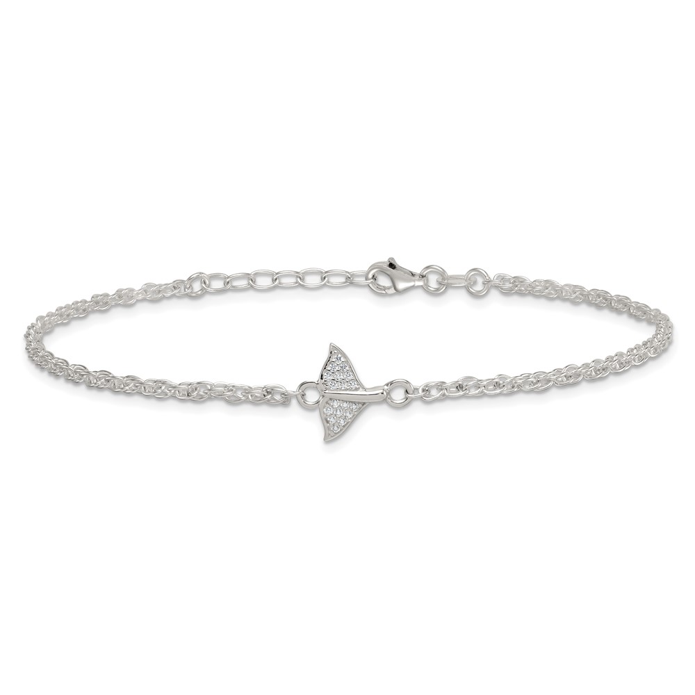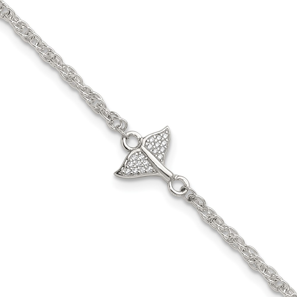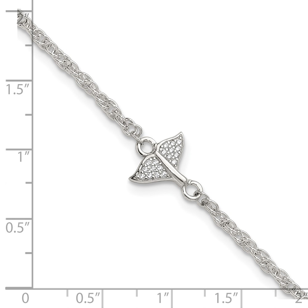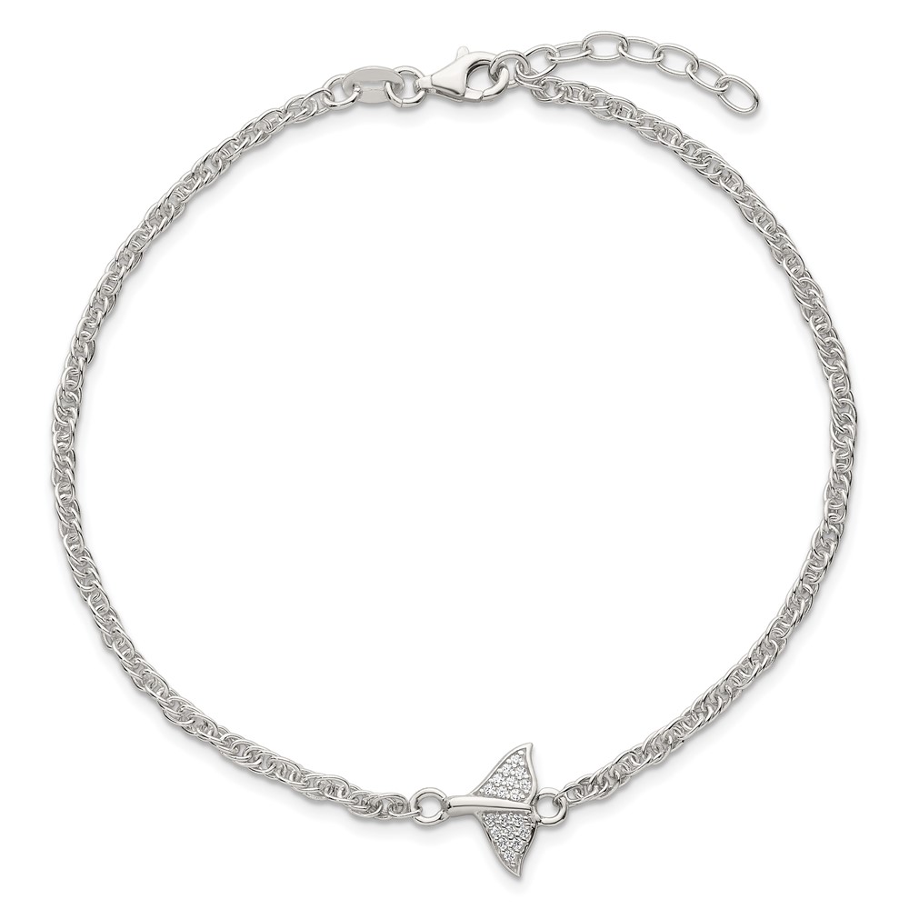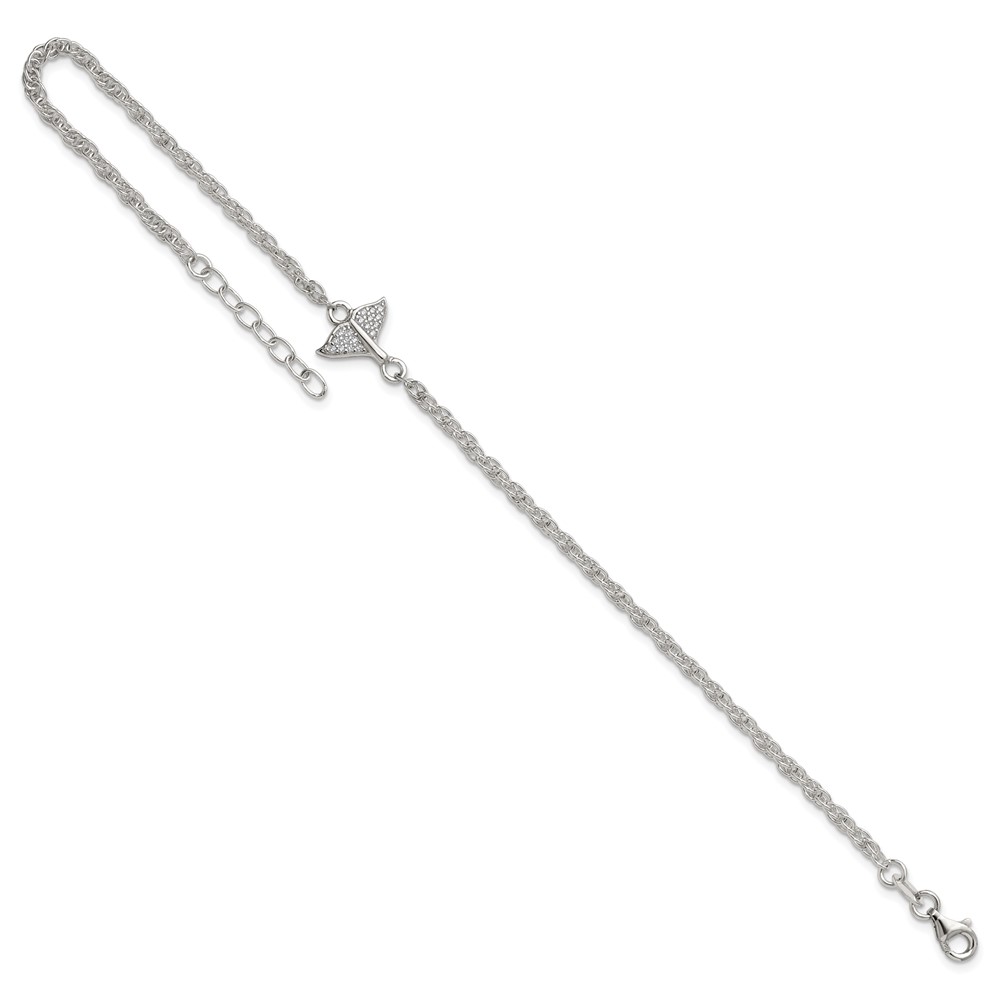 Sterling Silver CZ Whale Tail 9 inch Plus 1 inch Extender - Total 10 inch Anklet