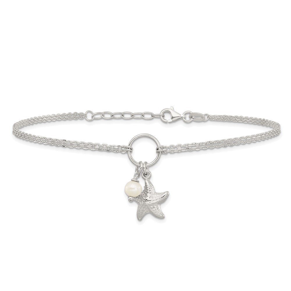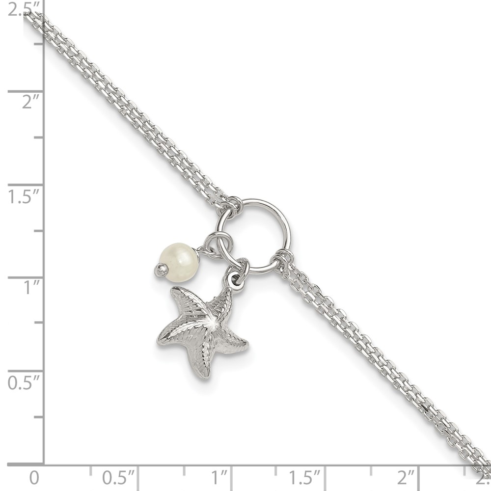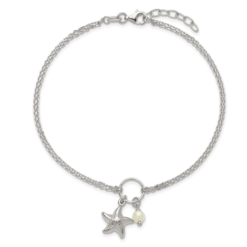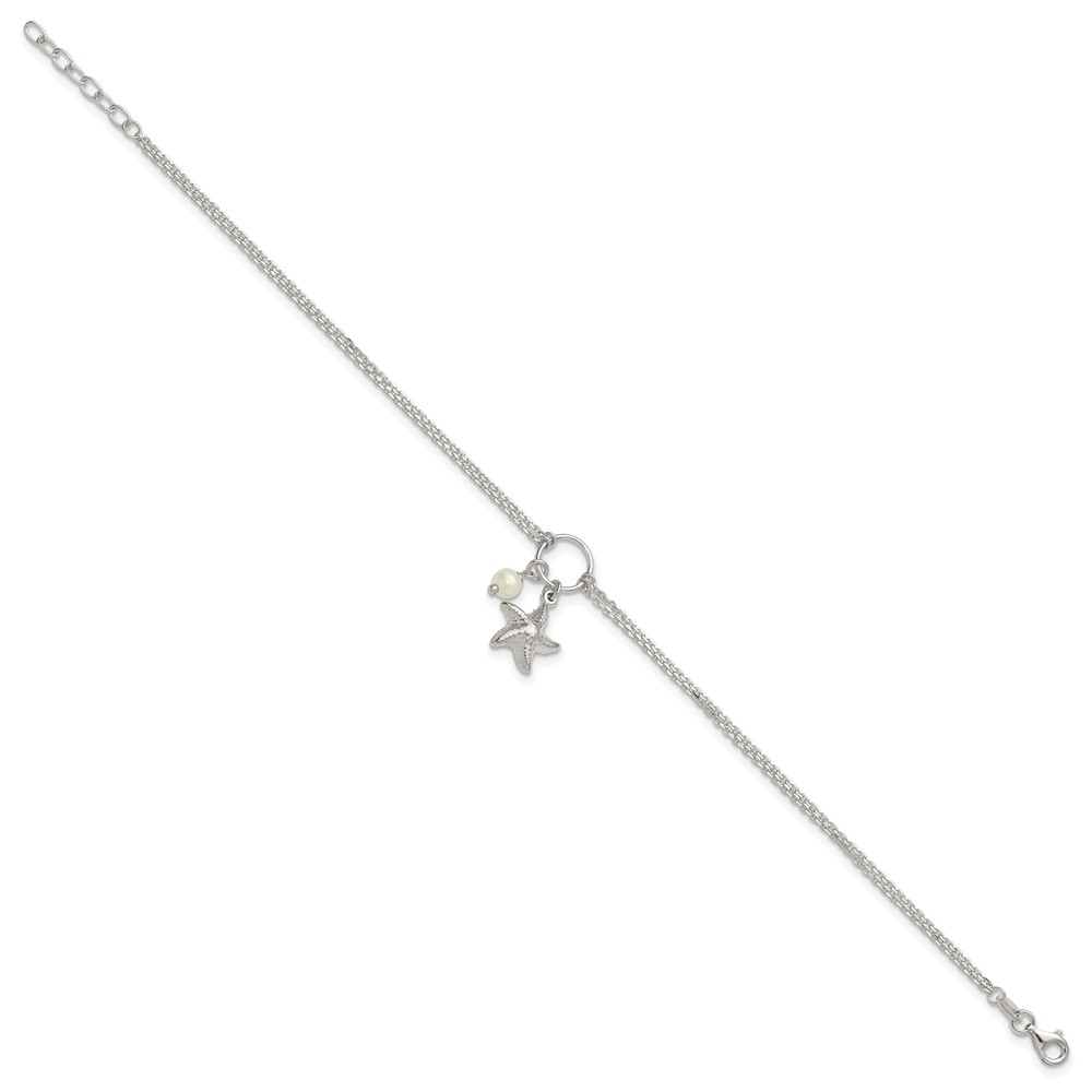 Sterling Silver Freshwater Cultured Pearl/Starfish 2-Strand 9 inch Plus 1 inch Extender - Total 10 inch Anklet