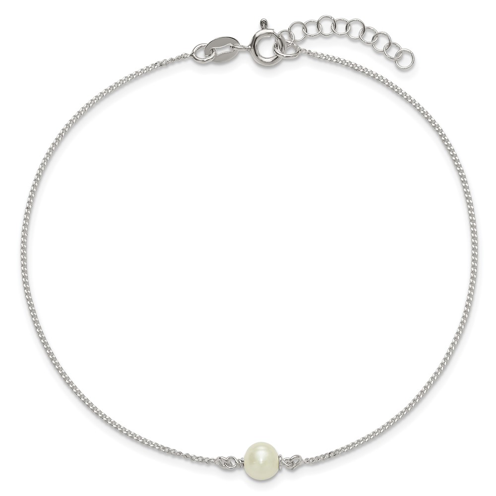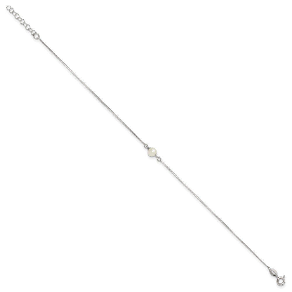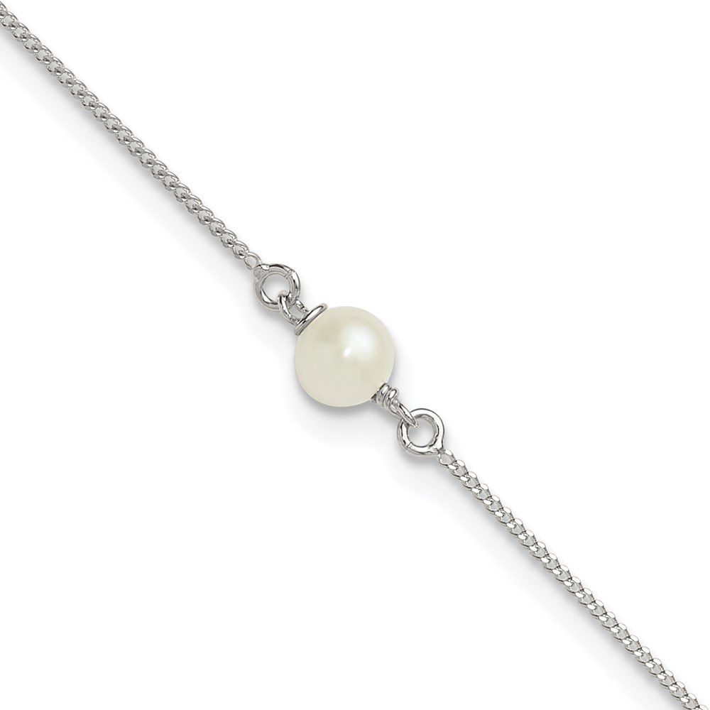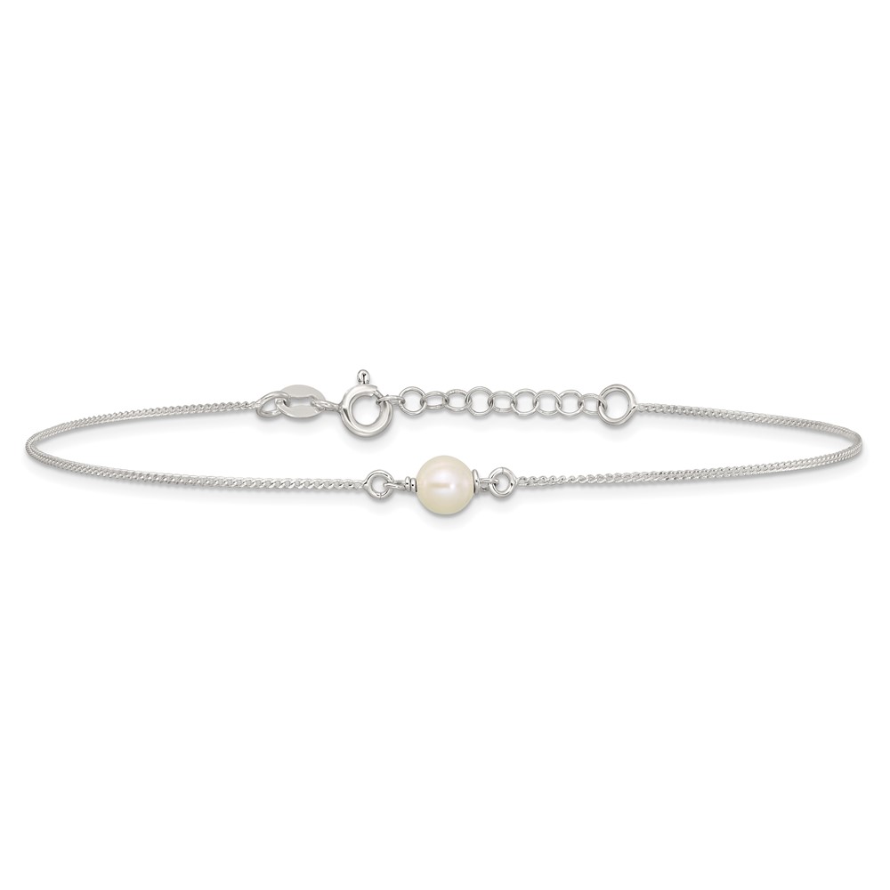 Sterling Silver Freshwater Cultured Pearl 9 inch Plus 1 inch Extender - Total 10 inch Anklet